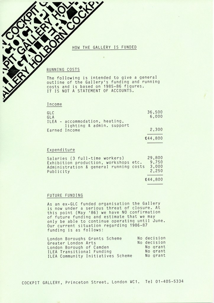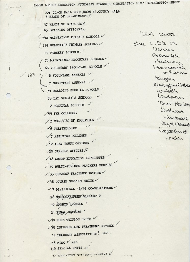 The Gallery was able to reach all the institutions that were run by the ILEA by taking their publicity to the post room at County Hall. The GLC and the ILEA shared the building.
