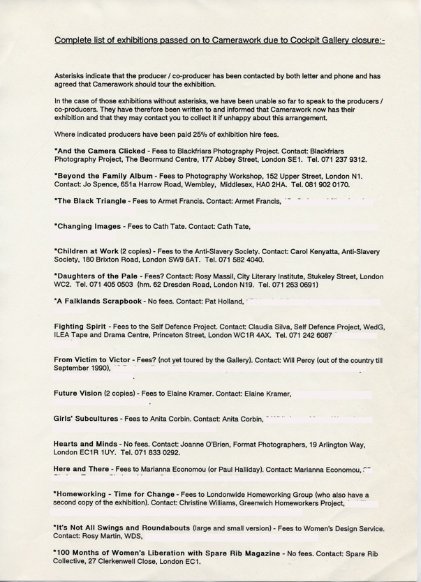*Late exhibitions recorded as transferred from Interchange to Camerawork. No images available.