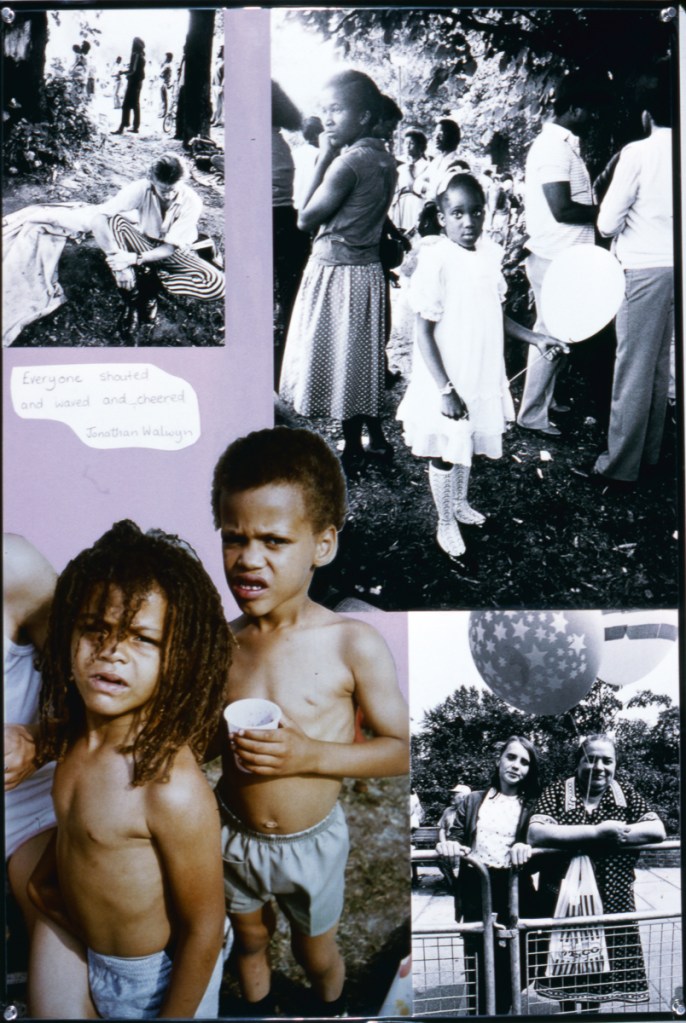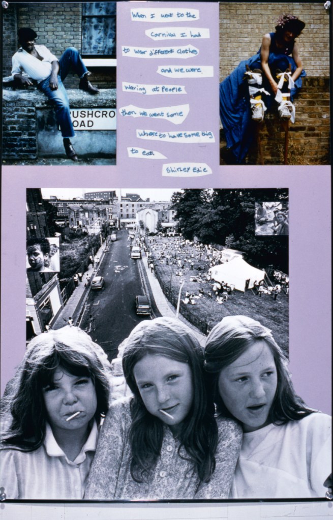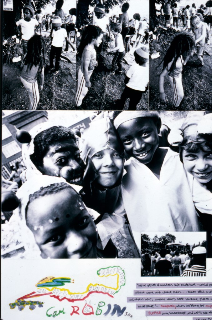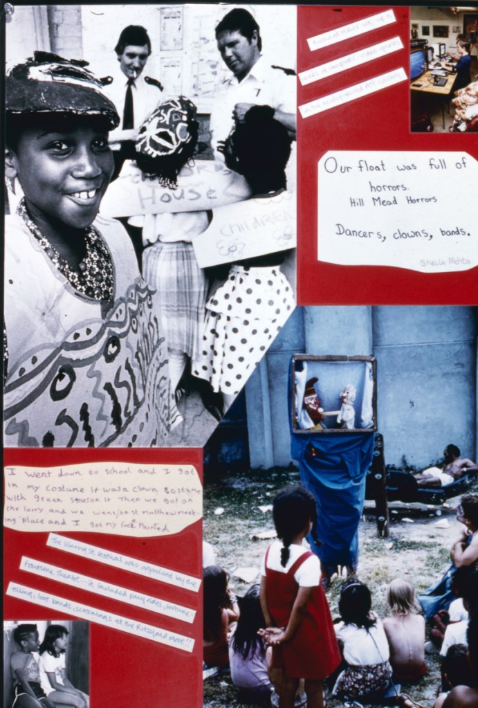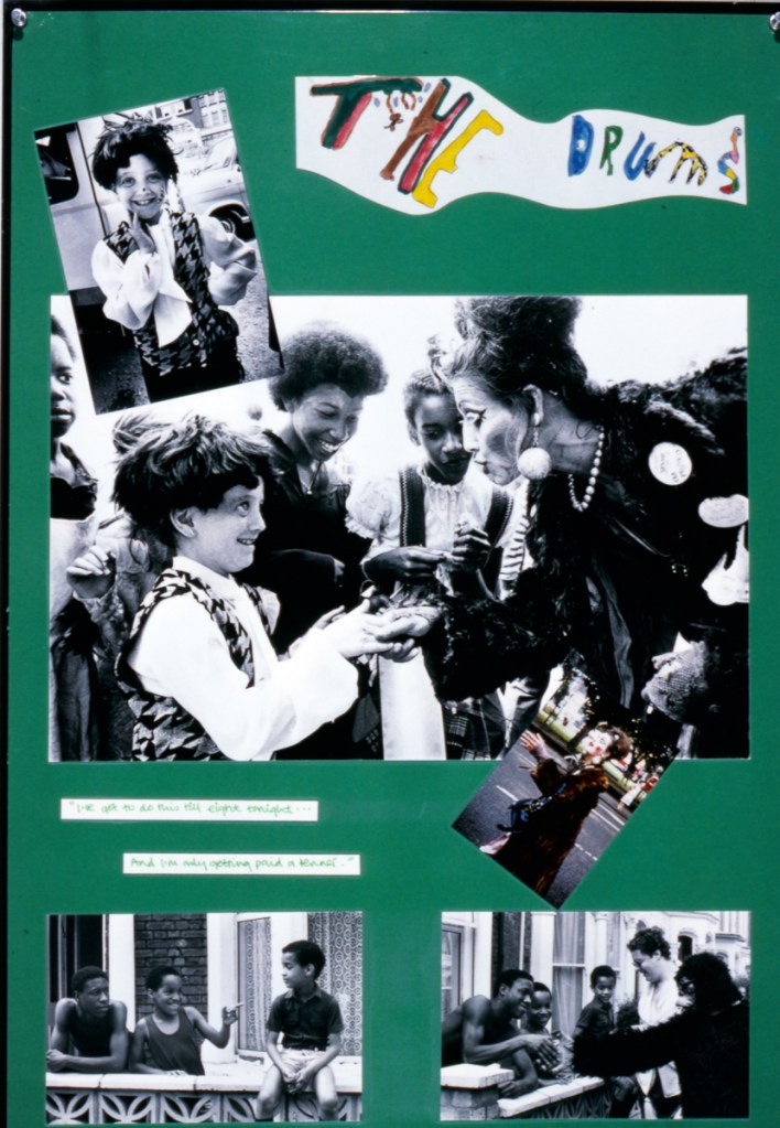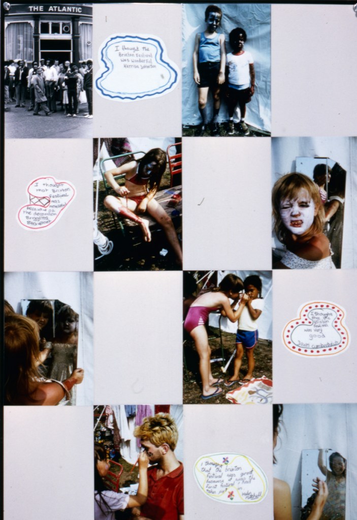 The Brixton Festival exhibition covers the carnival, street theatre, dance and music from the 1983 event which received little attention from the media as there was little trouble. A lively show with lively comments, the exhibition portrays people from all walks of life – as the pavement graffiti on the first panel indicates: “Brixton is alive and well and in some social worker’s notebook”. The exhibition has changed through exposure to comments and now incorporates some of the responses of both the photographers and the photographed to various images.