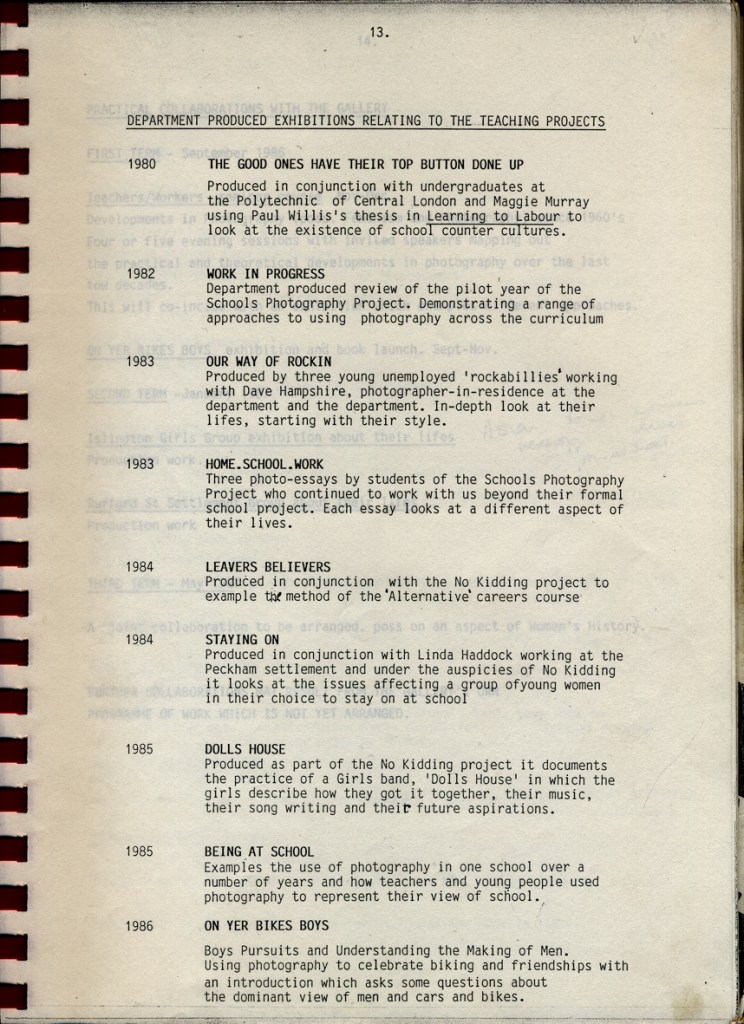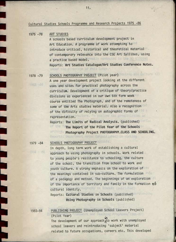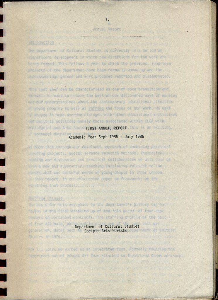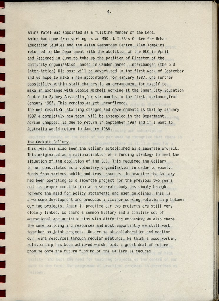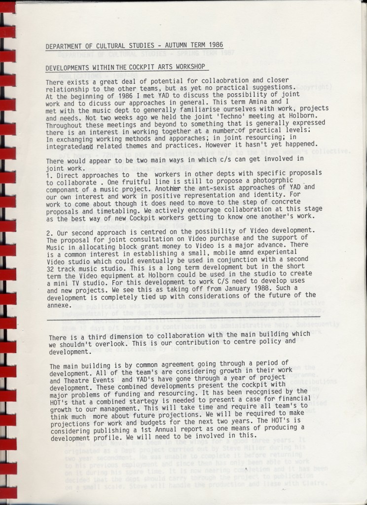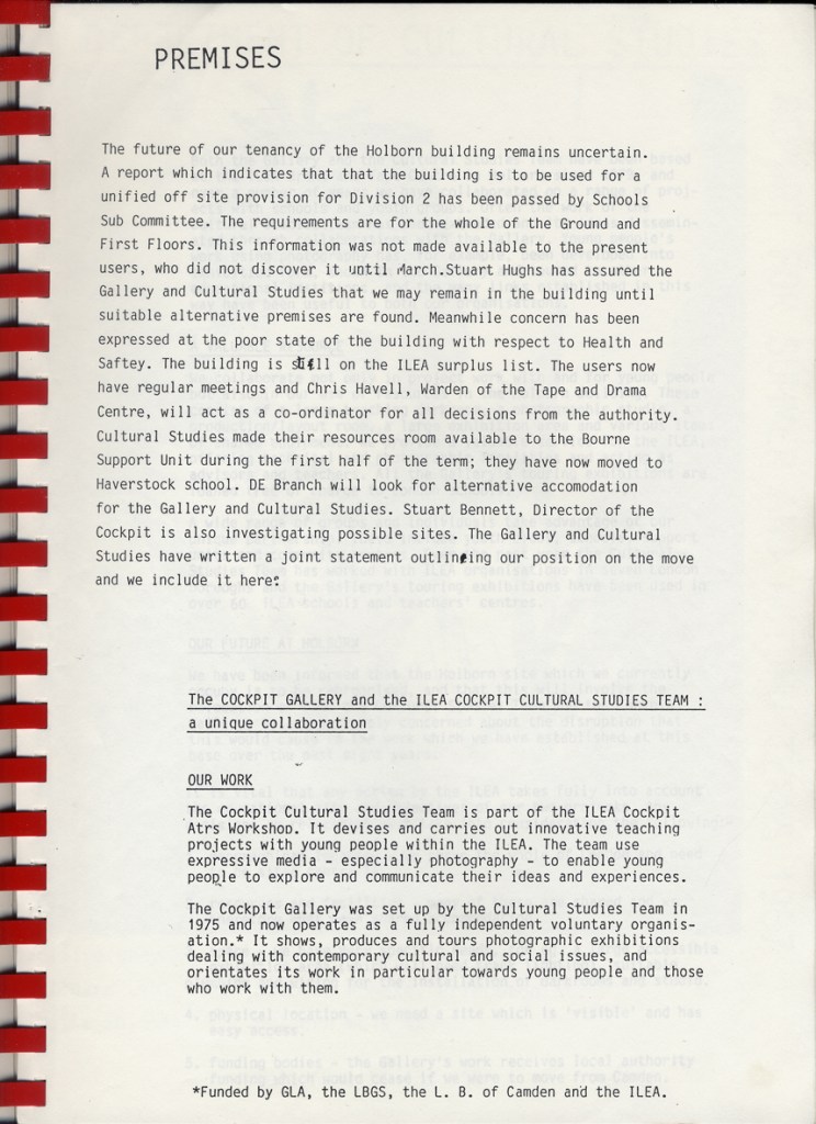 Cockpit Gallery Exhibitions & Cultural Studies projects 1973-89