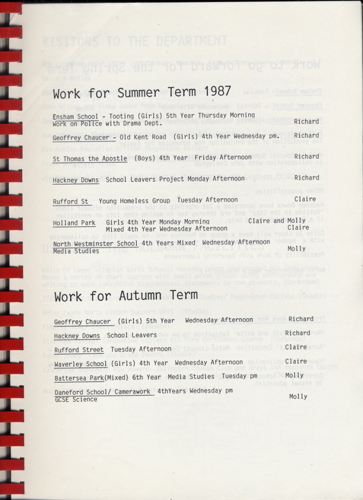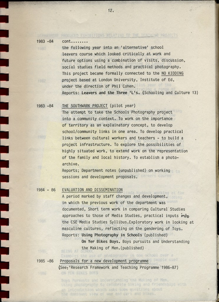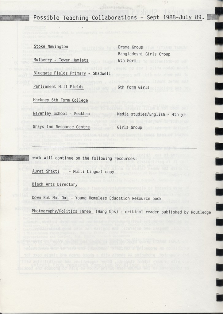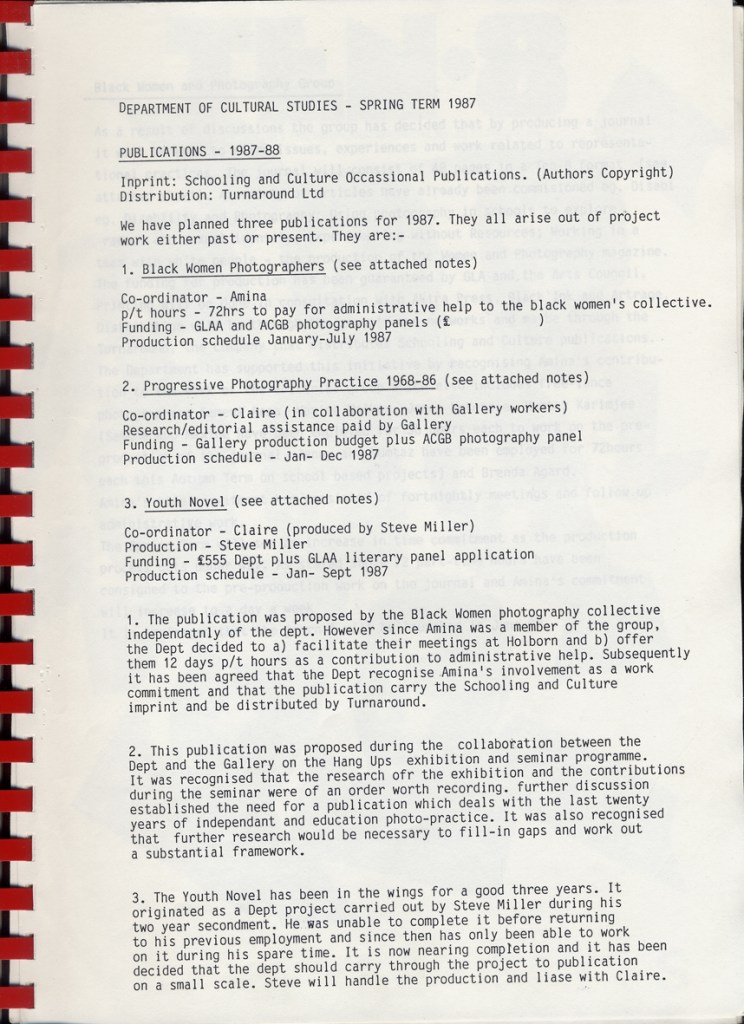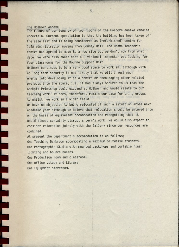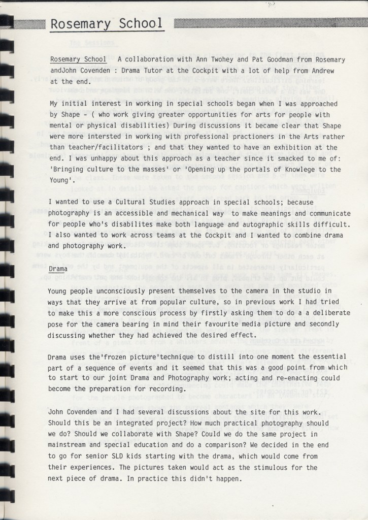 Cockpit Gallery Exhibitions & Cultural Studies projects 1973-89
