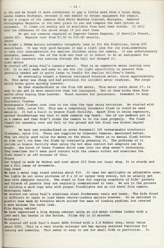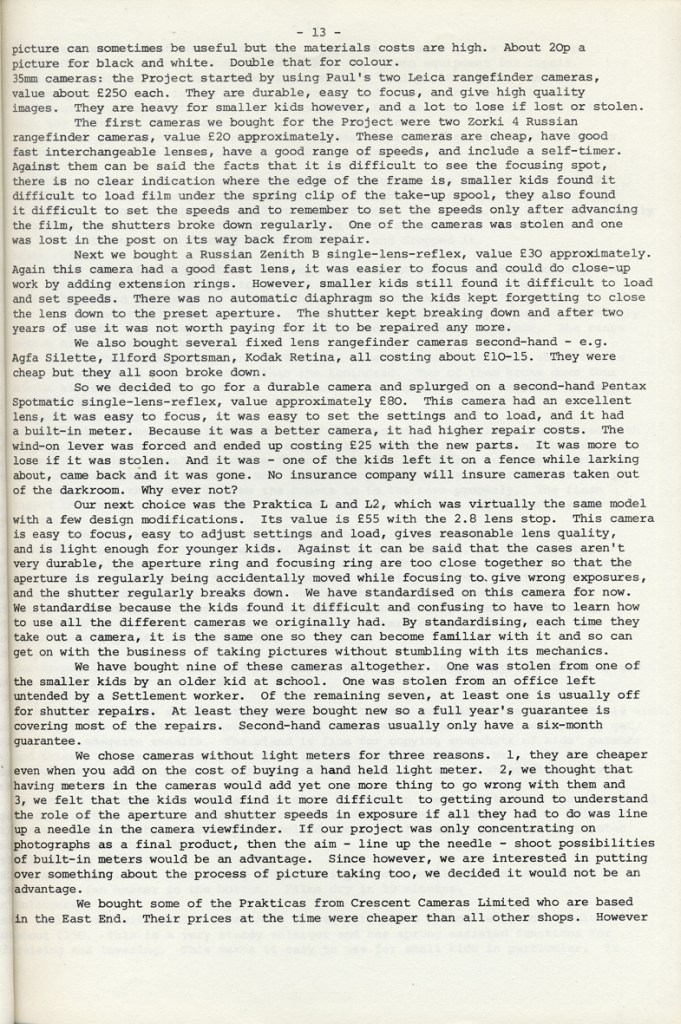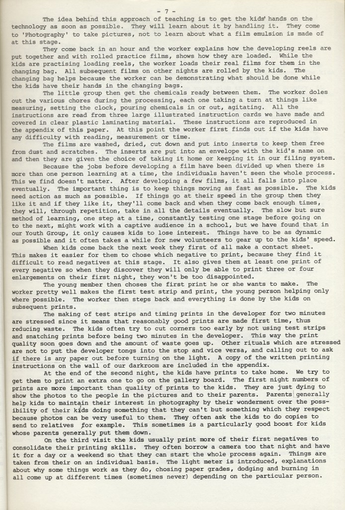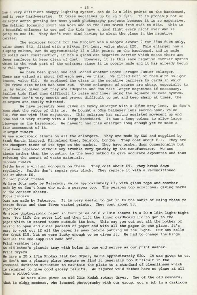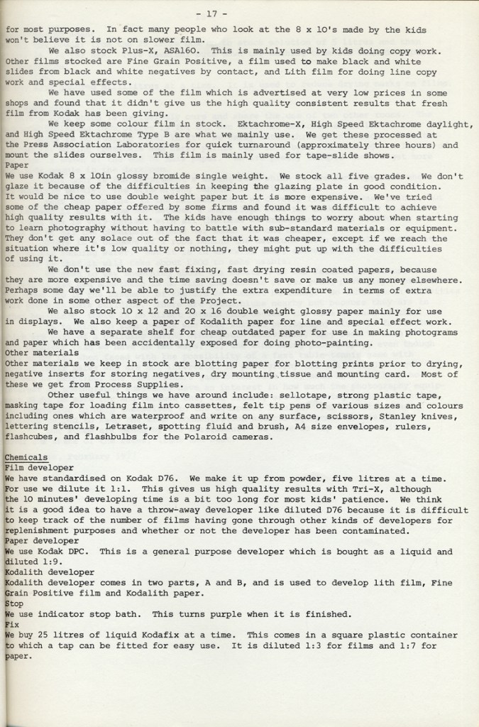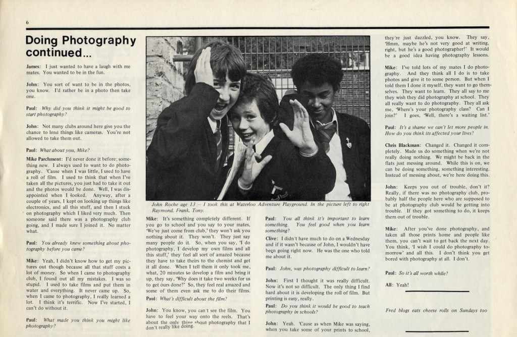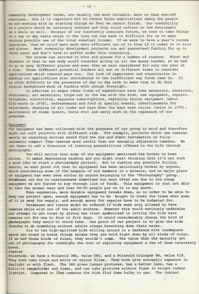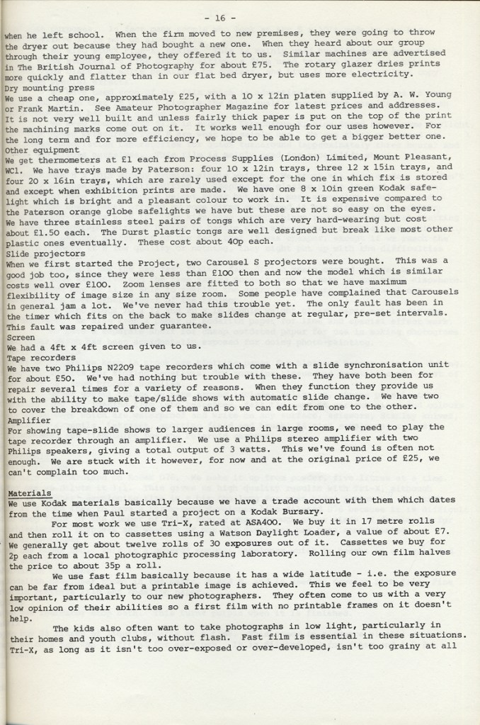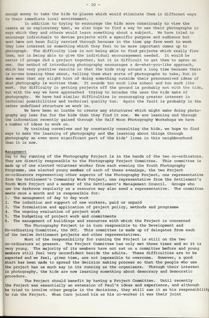 Paul Carter produced a guide to the photography at Blackfriars Settlement in 1977. It was distributed by Photography Workshop as part of a “Jackdaw” folder after their Workshop: Kids and Photography In and out of school