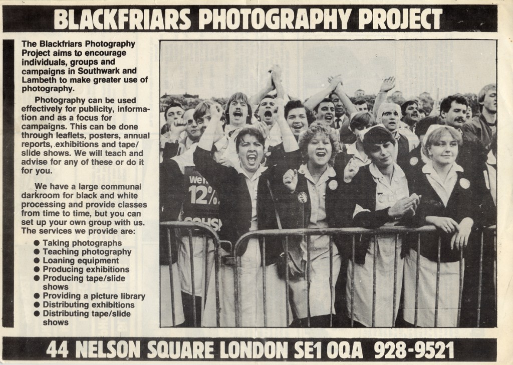 Poster produced by North Southwark Community Development Group and Blackfriars Photography Project with financial assistance from GLC and GLAA.