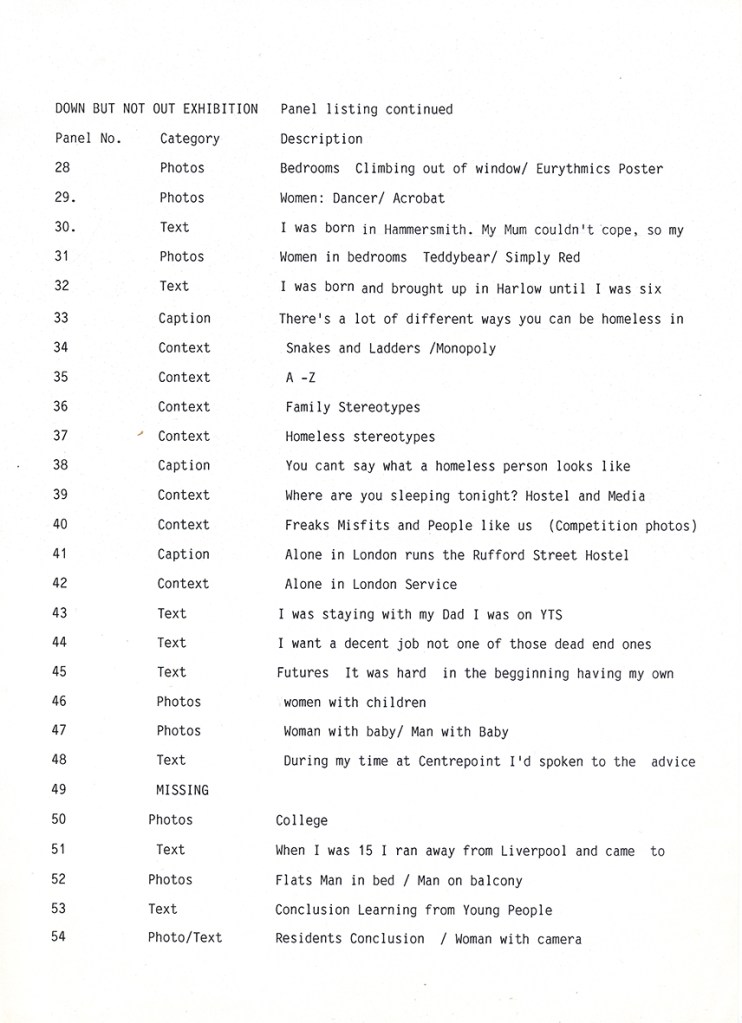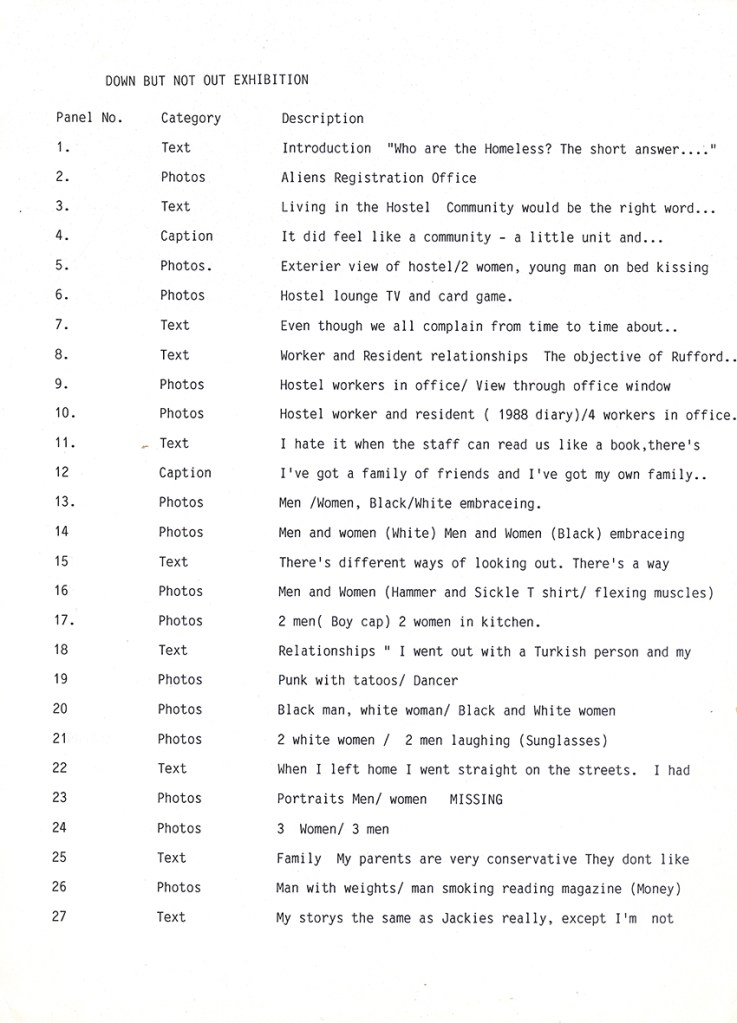 The exhibition consisted of a laminated poster and a red title, 23 panels of photographs, 18 panels of text, 5 captions, 7 context panels, 36 small portraits and 1 red ILEA sign. As it was so large borrowers would often hire only part of it.