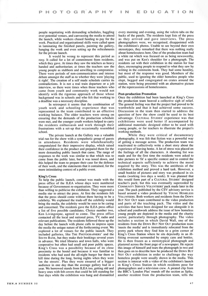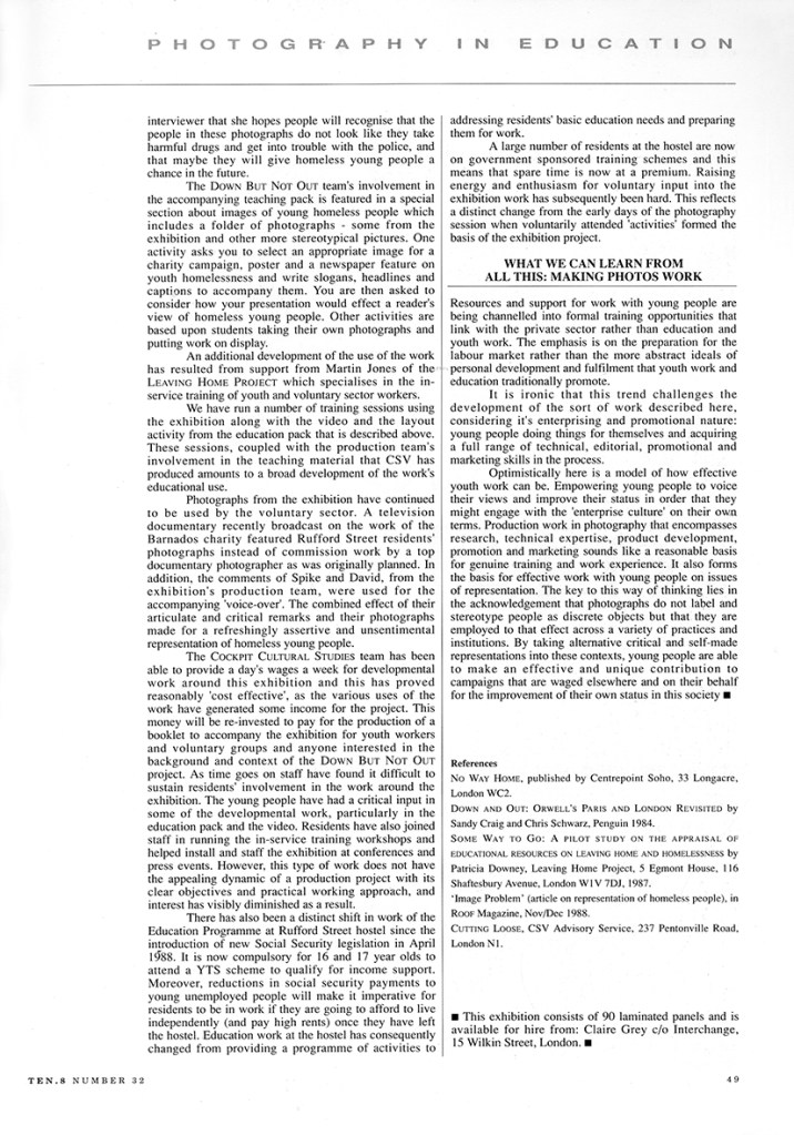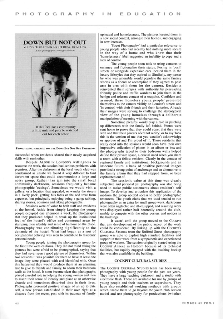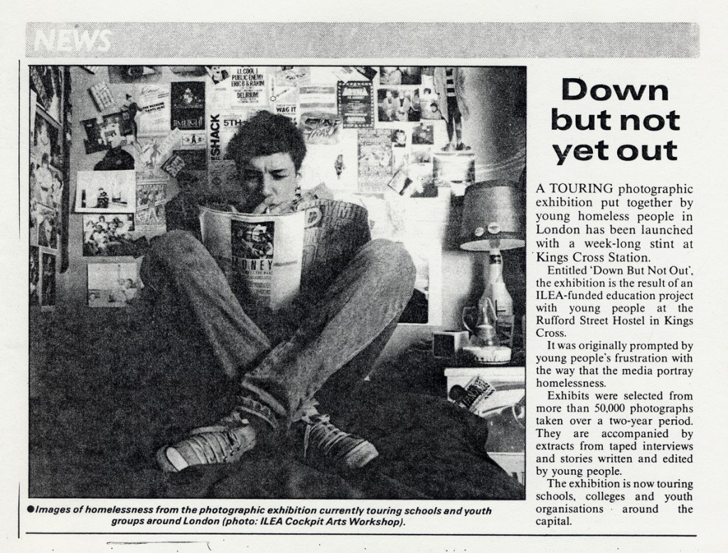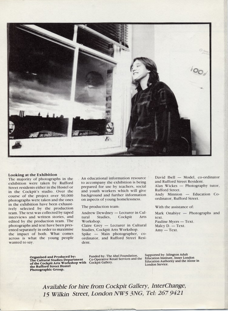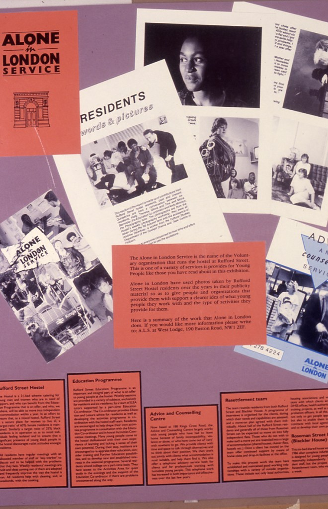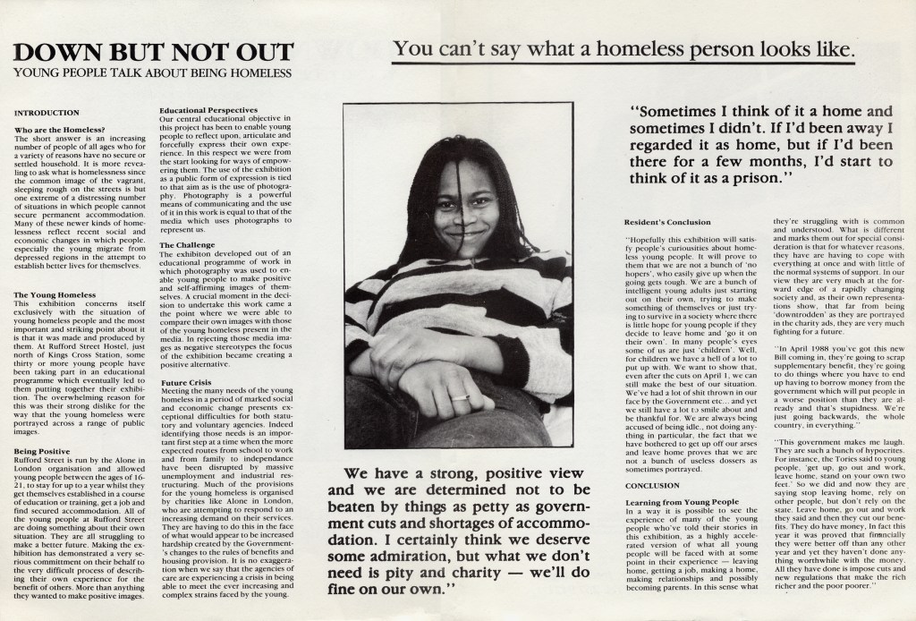 Produced by a group of homeless young people during their stay in a hostel in central London, this exhibition presents an alternative image of today’s ‘young homeless’. Stories, comments and above all, large striking photographs, are used to make a fresh statement about youth homelessness directly from those who experience it. Teaching materials available.