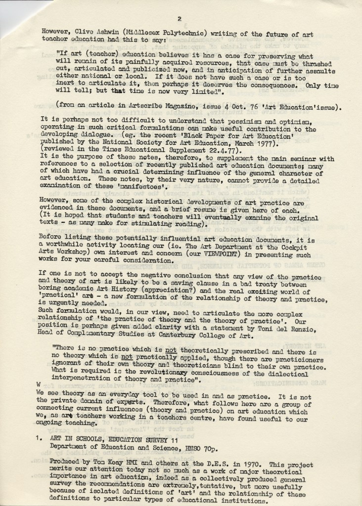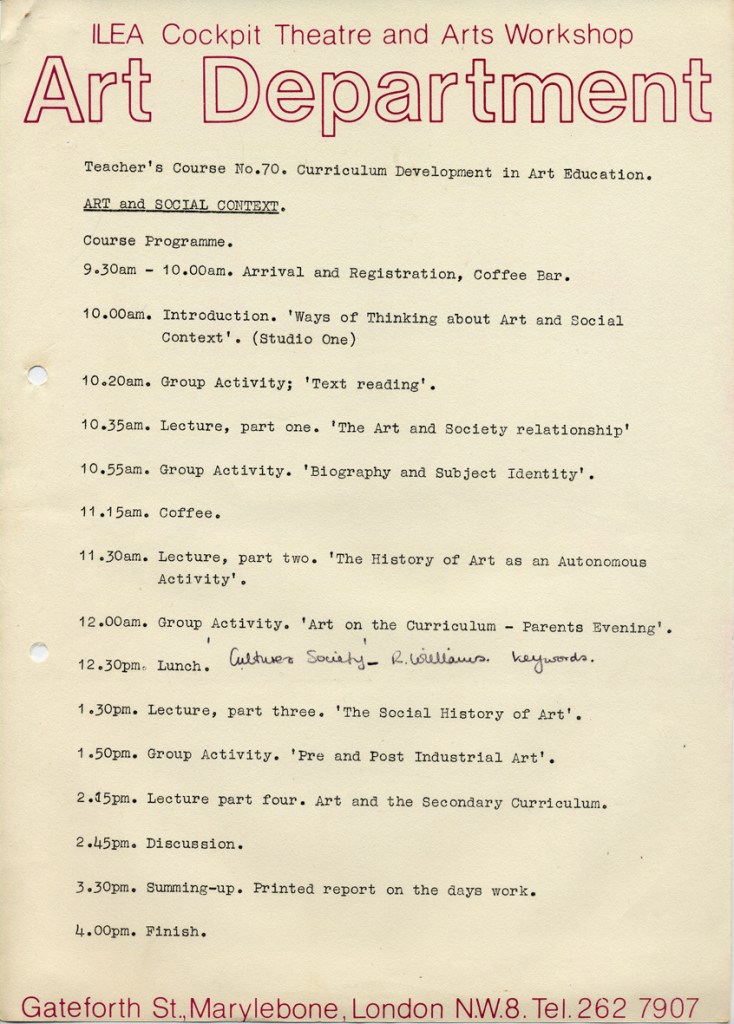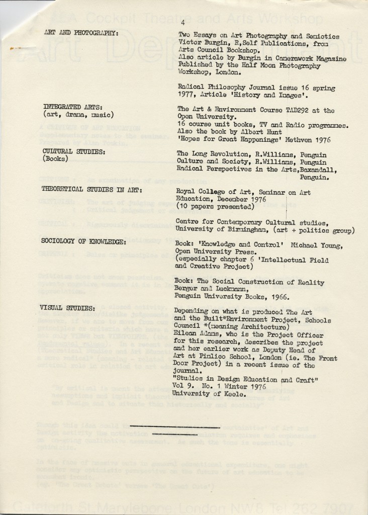Cockpit Gallery Exhibitions & Cultural Studies projects 1973-89
