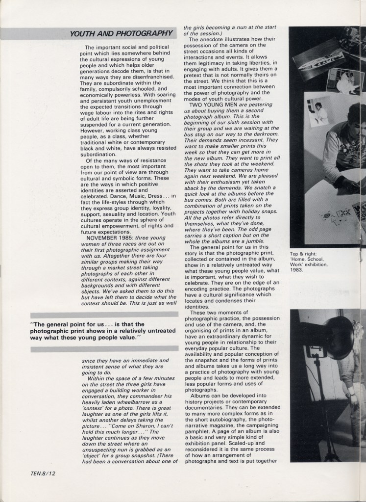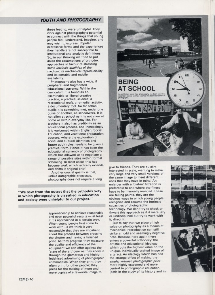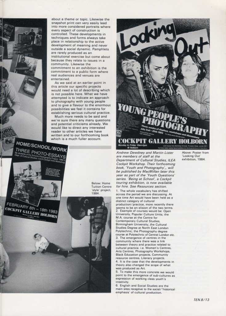 Martin Lister wrote about the politics of photography education in a paper dated 15 April 1987 which was published in Ten.8 No. 25 pps 54-56.