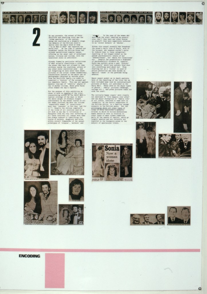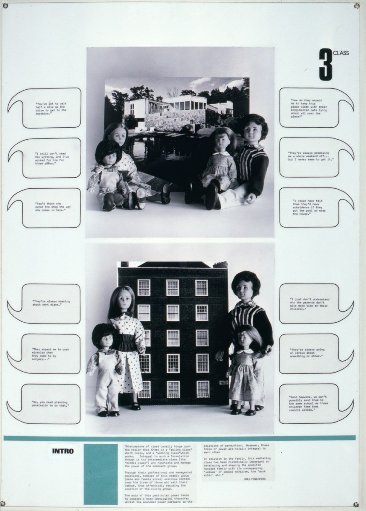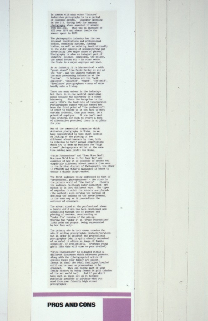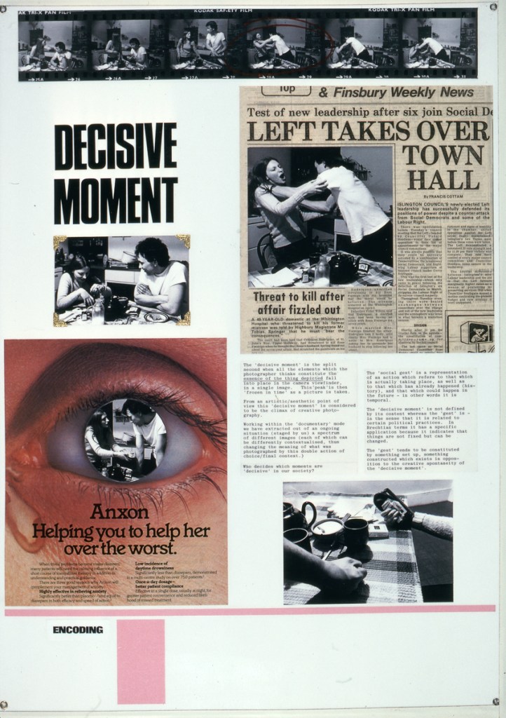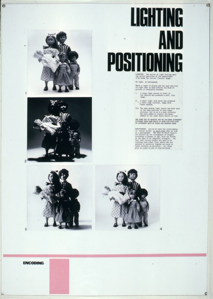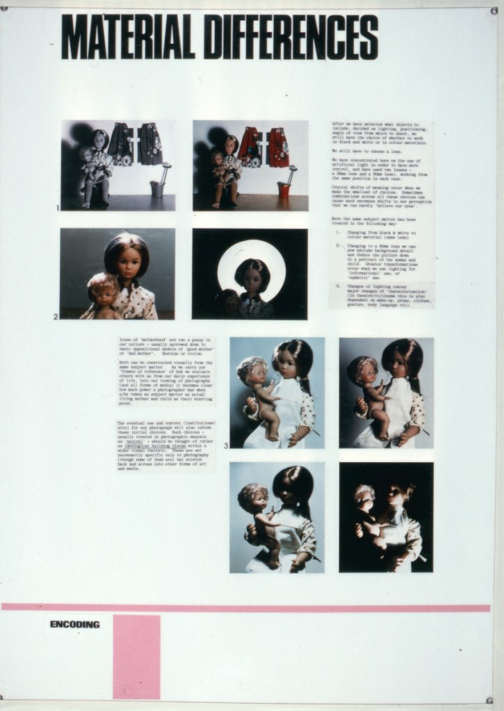 A photographic exhibition by the Pollysnappers (a women’s group at the Polytechnic of Central London). This work makes connections between professional practices in photography (forms of encoding and mediation), and ways in which photographs are viewed (their use), whilst centring upon ways in which ‘the family’ is visually represented within the dominant culture.