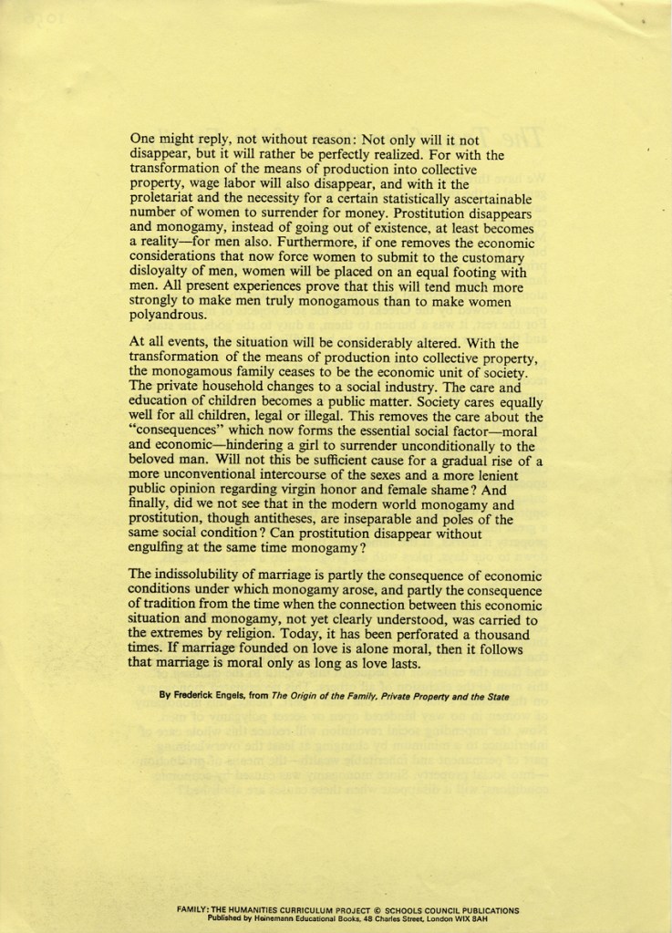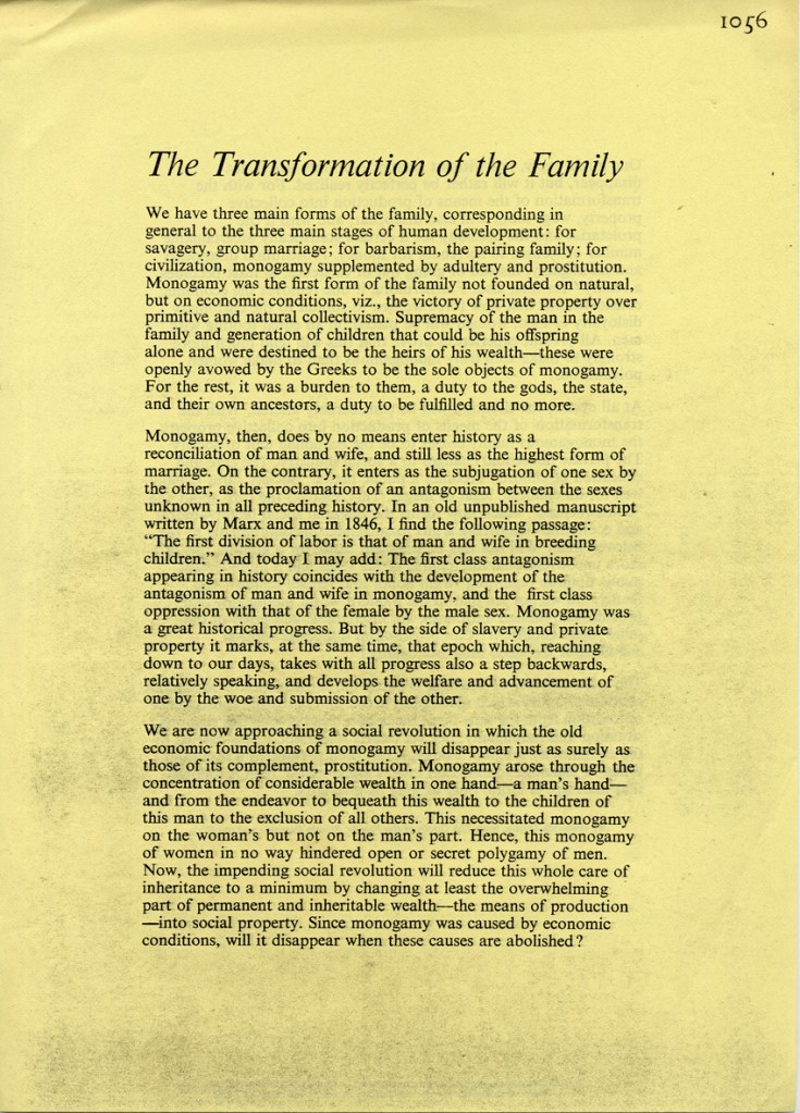 The Transformation of the Family, extract from The Origin of the family, Private Property and the State by Frederick Engels