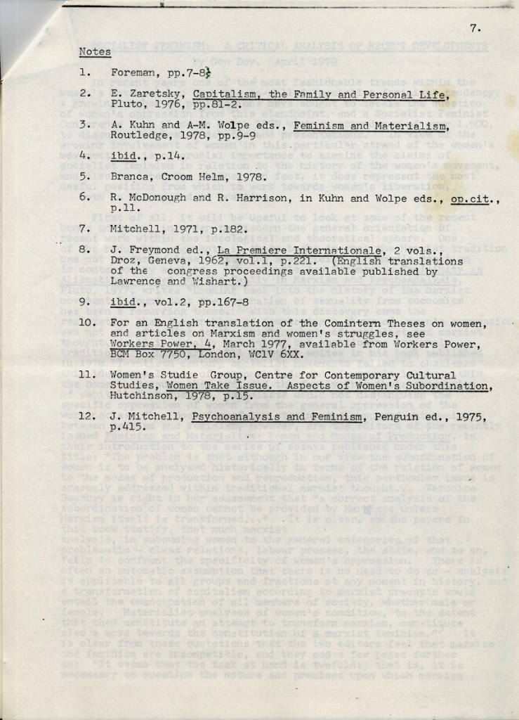 Week 7 Socialist Feminism: A Critical Analysis of Recent Developments by Gen Doy April 1979