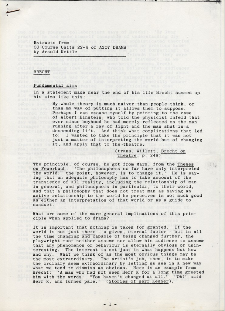 Brecht: Extracts from OU Drama Course by Arnold Kettle