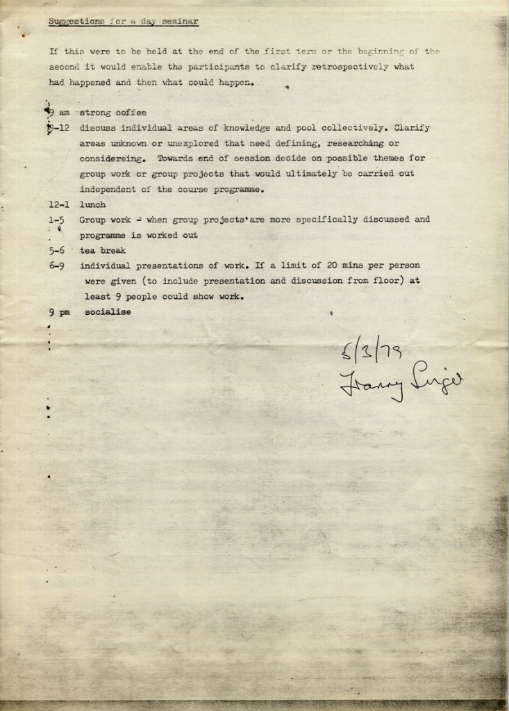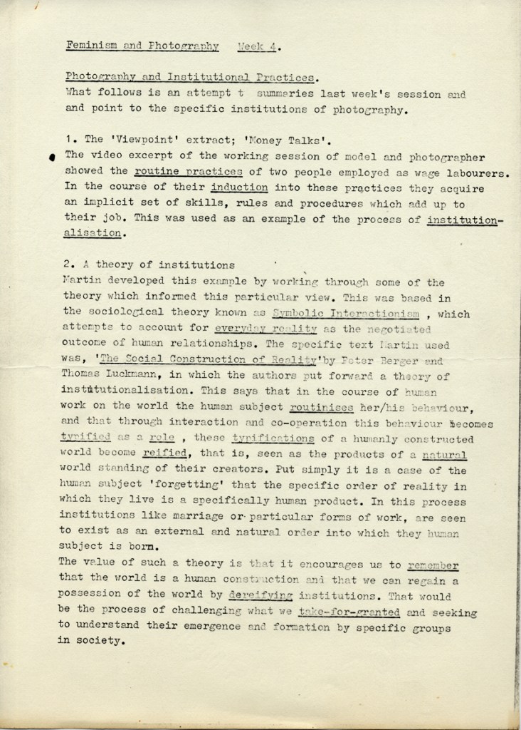 Notes from Liz Heron and Jo Spence about the course 2 March 1979