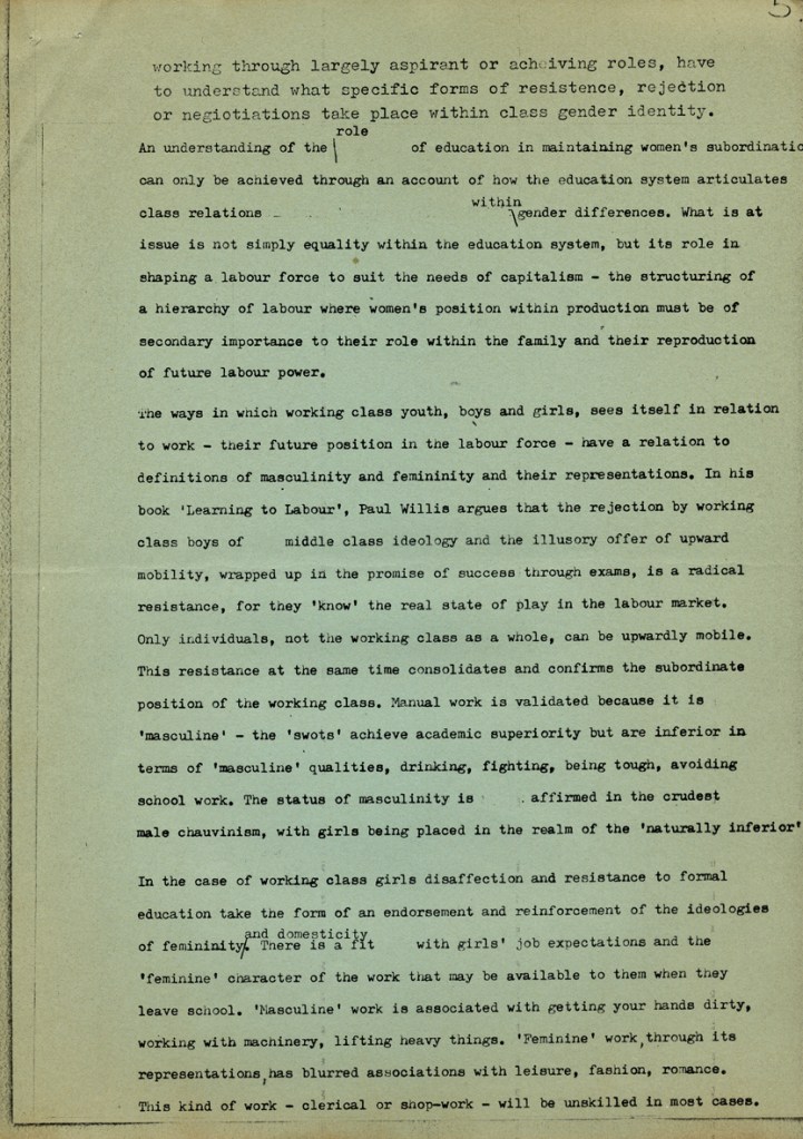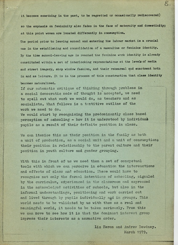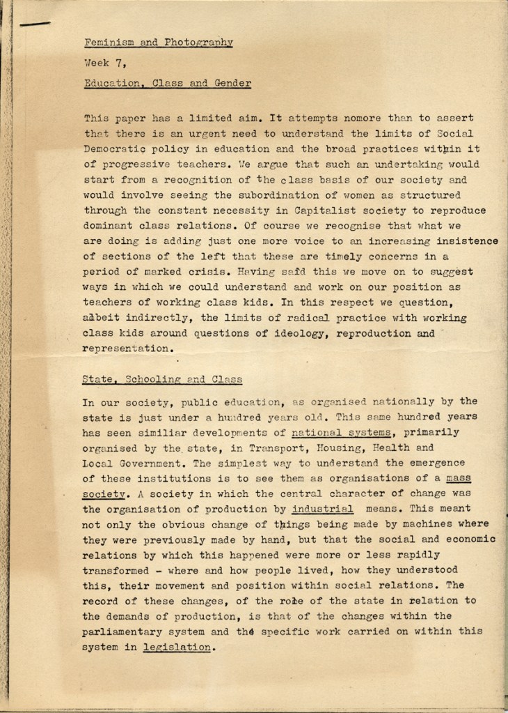 Week 8 Education, Class and Gender by Liz Heron and Andrew Dewdney March 1979