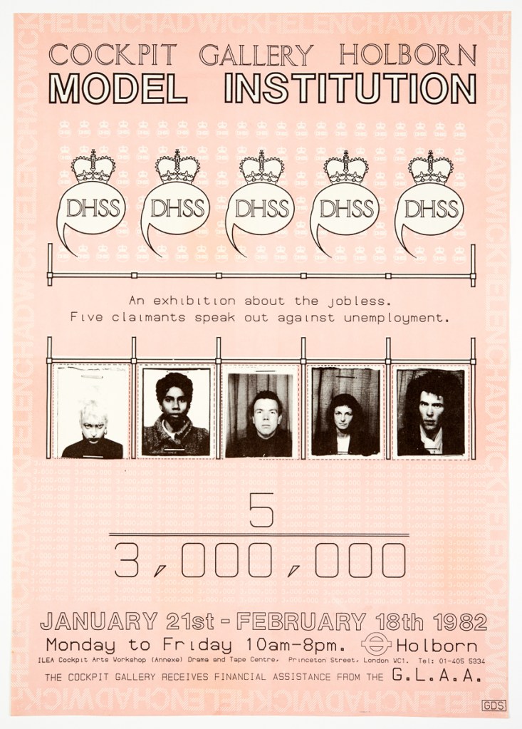 Model Institution – Helen Chadwick. An exhibition about the jobless. 5 claimants speak out against unemployment (21 Jan – 18 Feb 1982)