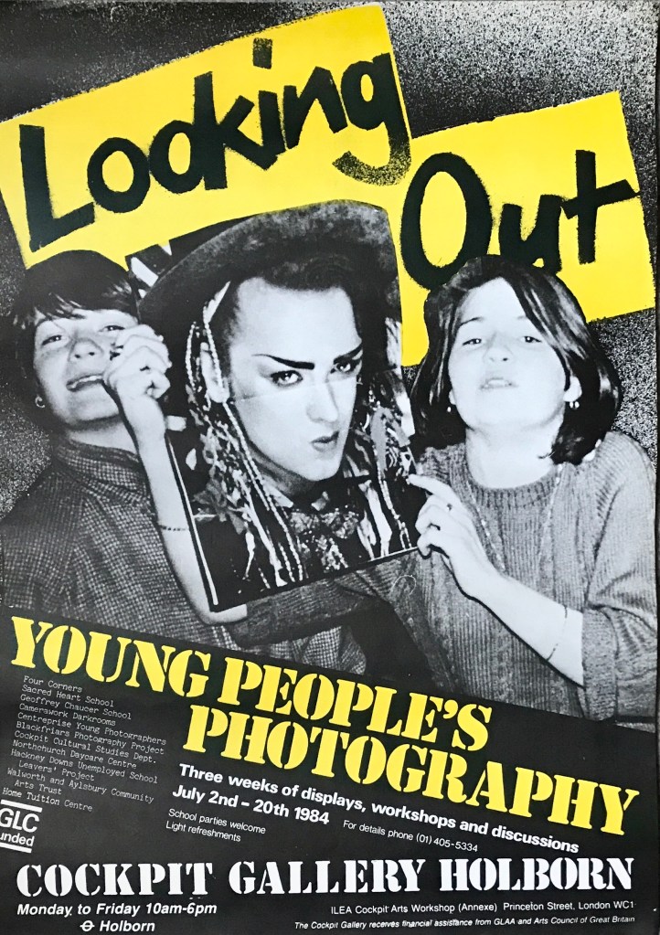 Looking Out (2-20 July 1984) – Work from Four Corners, Sacred Heart School, Geoffrey Chaucer School, Camerawork Darkrooms, Centreprise Young Photographers, Blackfriars Photography Project, Cockpit Cultural Studies Dept., Northchurch Daycare Centre, Hackney Downs Unemployed School Leavers project, Walworth and Aylesbury Community Arts Trust & Home tuition centre. No images available