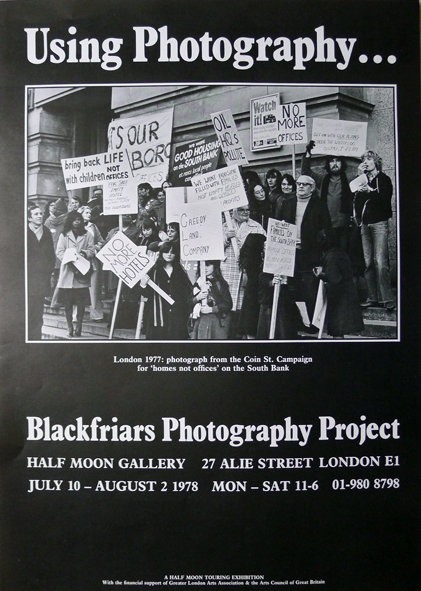 Using Photography… – Blackfriars Photography Project. Hired from Half Moon Photography Workshop (8 Oct – 31 Oct 1979) as part of the opening Cultural Studies exhibition.