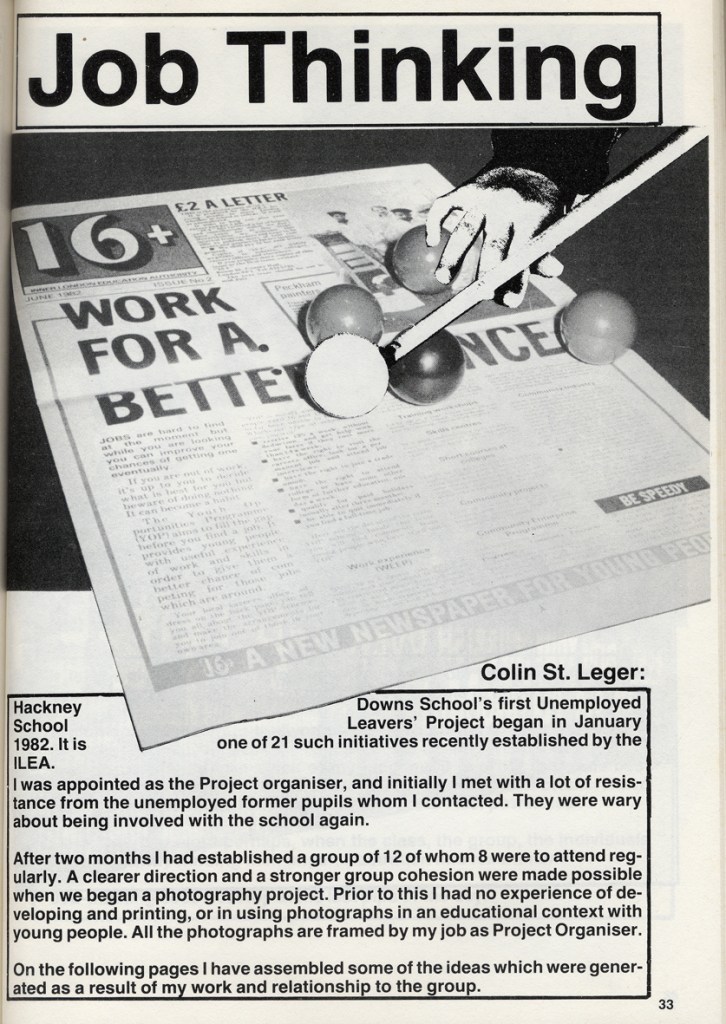 Project organiser Colin St. Leger described the work of the photography project in Schooling and Culture Issue 12, Autumn 1982.