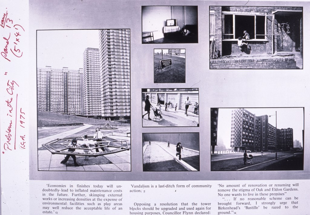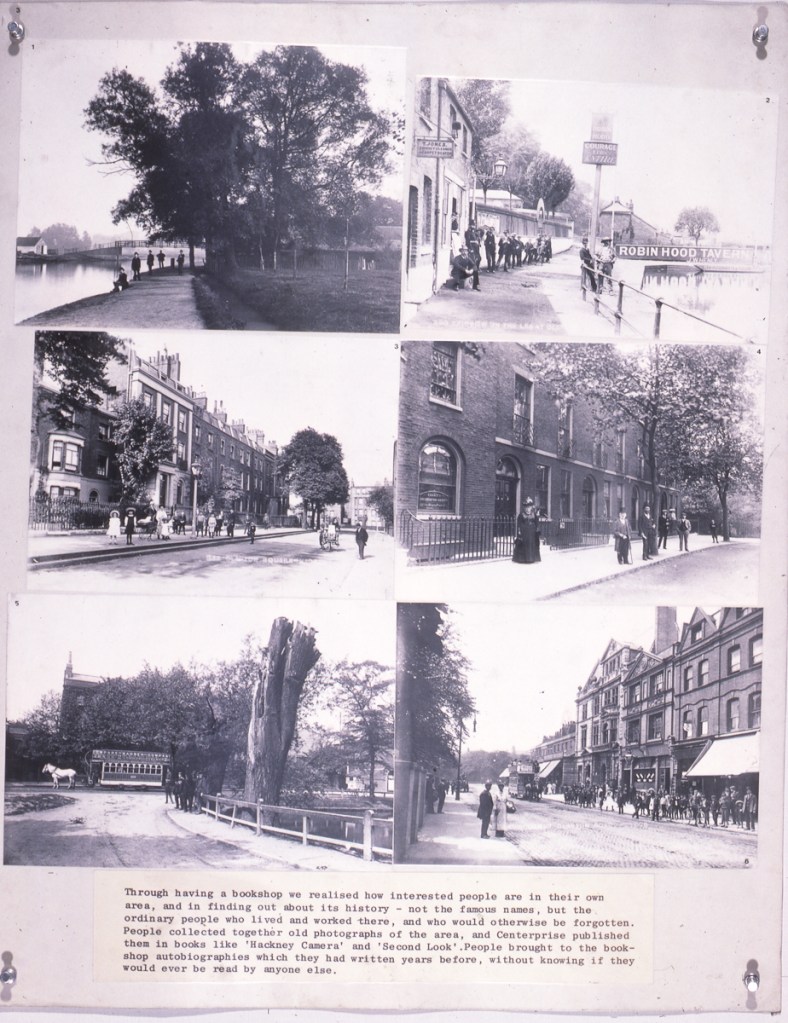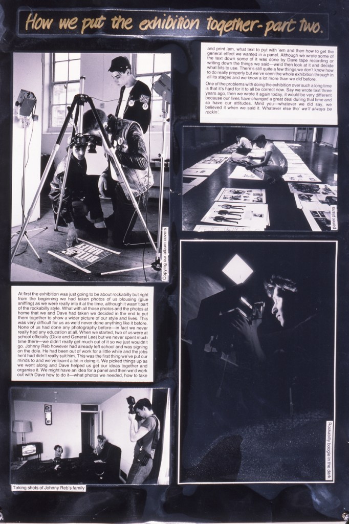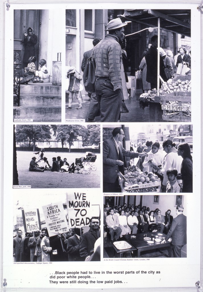 The panels no longer exist, but photographs could be seen at the Photography Workshop archive, 152 Upper Street, N1.