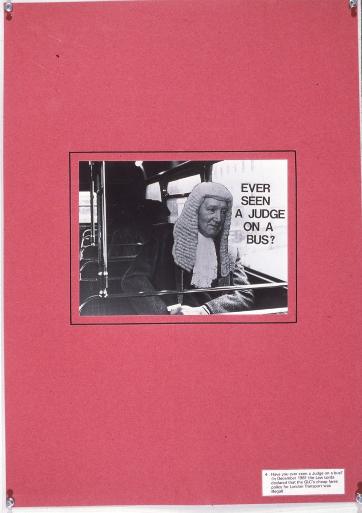 ‘Ever seen a judge on a bus?’ was produced for the Fares Fair campaign that was fighting against the Law Lords judgement that forced London Transport to put up fares.