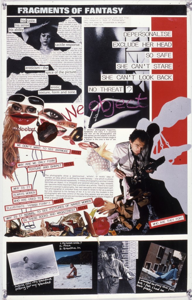SYNOPSIS: “Our aim was to produce an exhibition that looked critically at amateur photographic practice, and particularly its limited and limiting expectations of women, and to challenge it by offering alternatives: in images, in ways of working, in ways of using and thinking about photography, in the content and style of the exhibition itself. We made it in two parts. The first takes the format of an amateur photography magazine and subverts it. Subsequent panels present a series of arguments about the way women are represented and used. The nature of the relationships of power between men and women in amateur photography, fetishism, voyeurism and the objectification of women operate to produce the idealised and fantasy images of women pedalled in the amateur photography world. The second half turns the tables to show women using cameras themselves to make a wealth of different more positive images of women”.