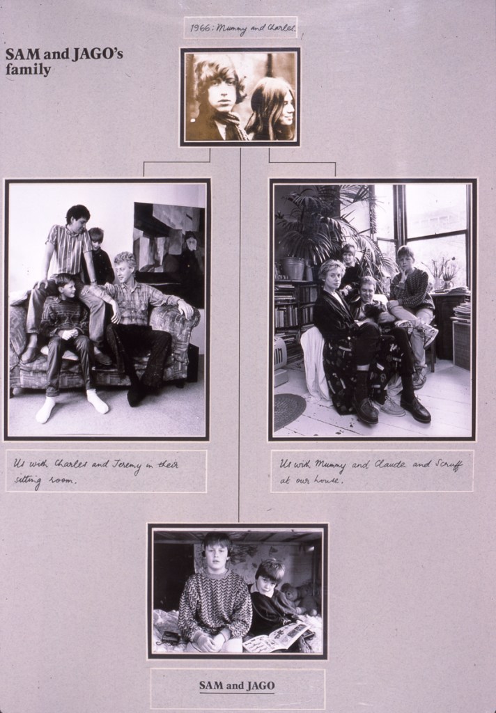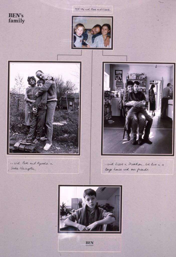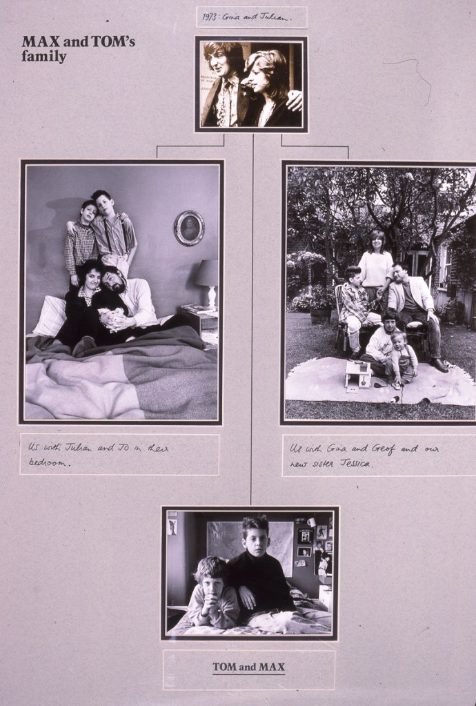 SYNOPSIS: It looks at six “divorced families” with pictures in the form of family trees. It was made to present a personal view that divorced families can be a positive environment for children to grow in. Two copies were made, one in frames for galleries and one laminated copy for community centres and schools etc. It may be incorporated into a broader-based book or pack of educational materials.