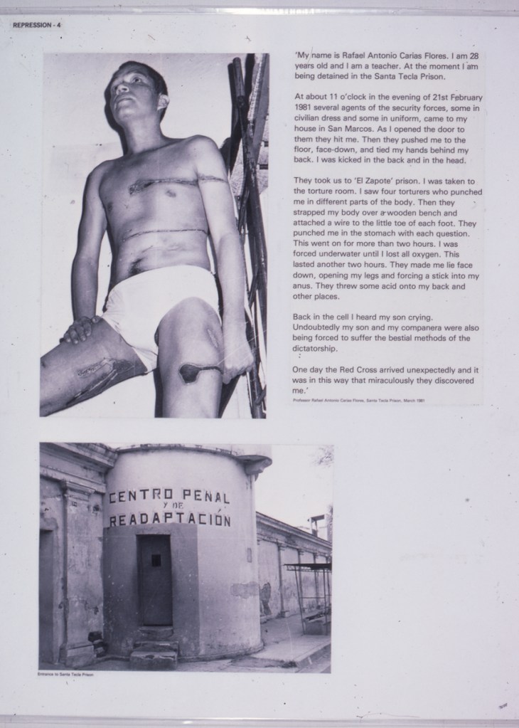 The exhibition was made to counteract the media portrayal of El Salvador as a savage and backward country, by producing an in-depth portrait of the country and its people. We wanted to let the people of El Salvador speak for themselves. We also wanted to produce a tool for human rights and solidarity workers. It was aimed at a very broad audience. We hoped that the simplicity of its design would make it very accessible and it was intended to be used in different types of venues, not just galleries.”