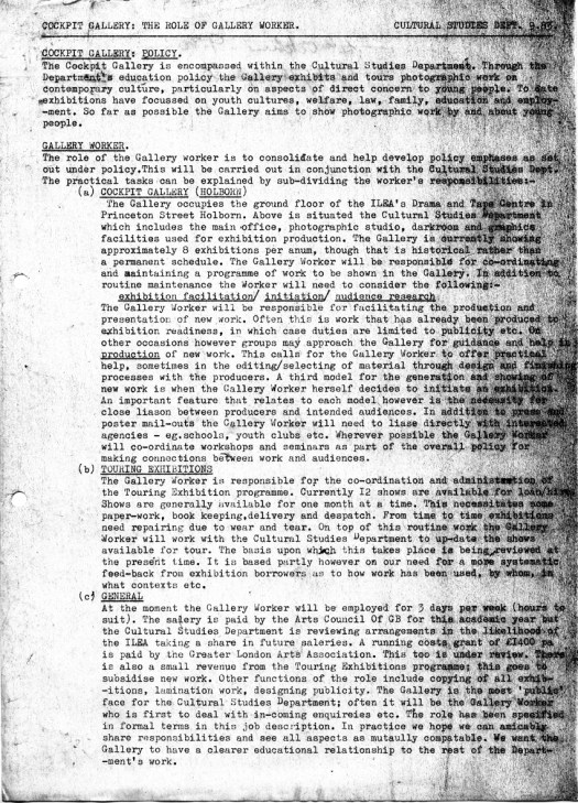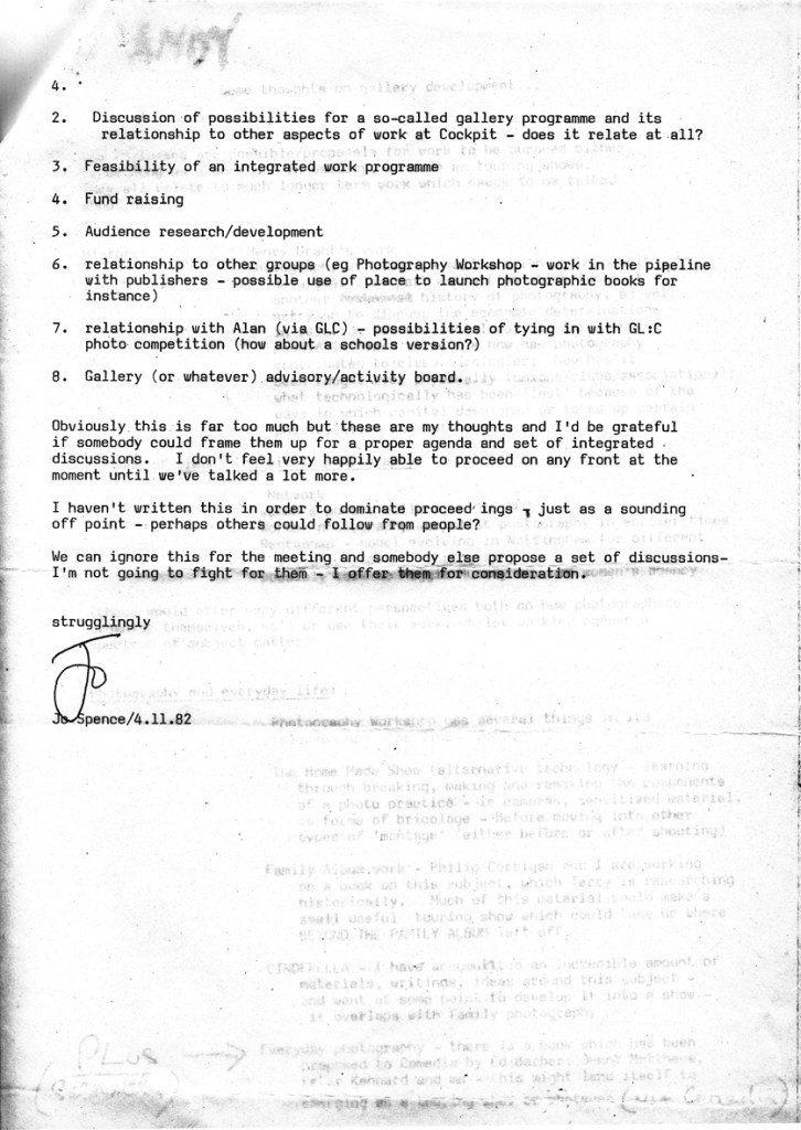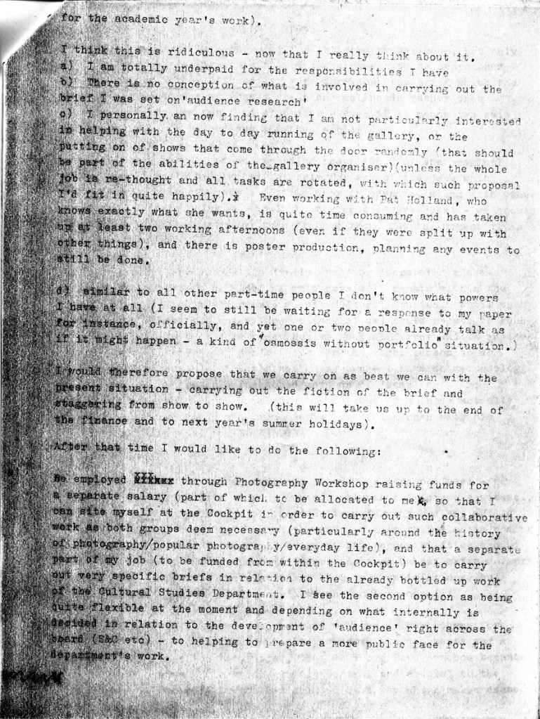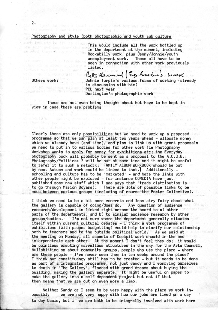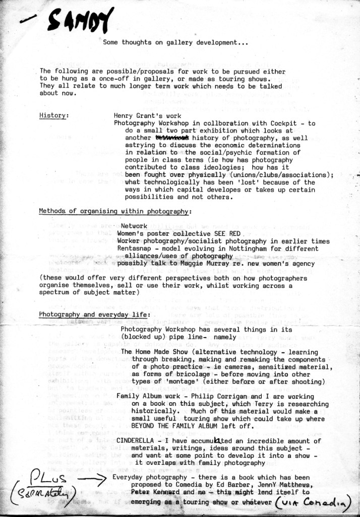 In 1979 Jo Spence and Liz Heron with Andrew Dewdney and Martin Lister from the Cockpit ran the course. The reading list included Photography / Politics One which was about to be published.
