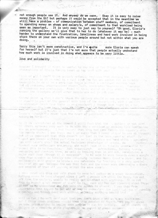 12 October 1983 Jo’s observations on the job and Gloria taking up the post.
