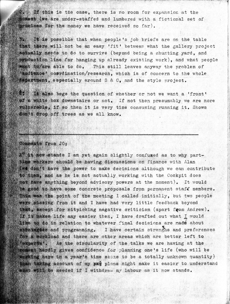 From 1982- 83 Jo was part time administrator of the Cockpit Gallery, a job that she shared with Sandy Bailey.