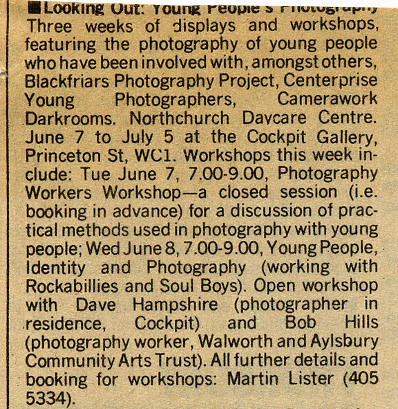 Centreprise Young Photographers (Sandra Hooper/Guy Farrar) 136/158 Kingsland High Street LONDON E8 (254-9632/5)