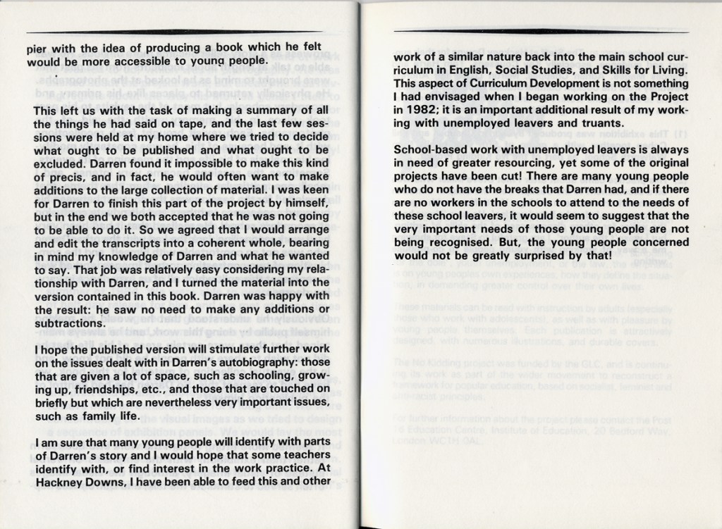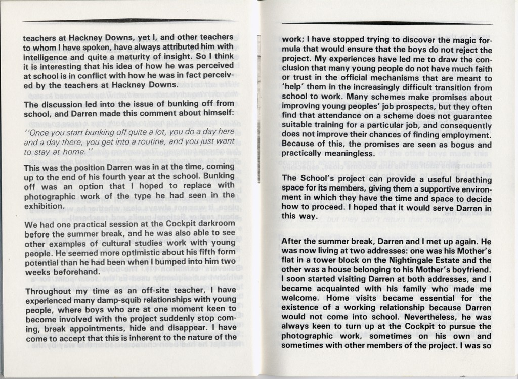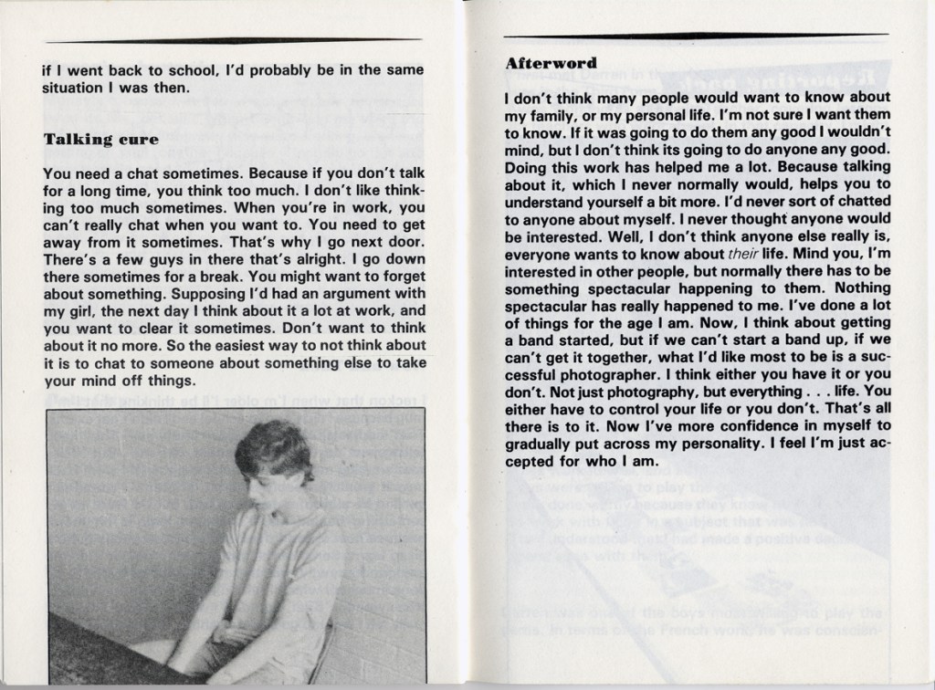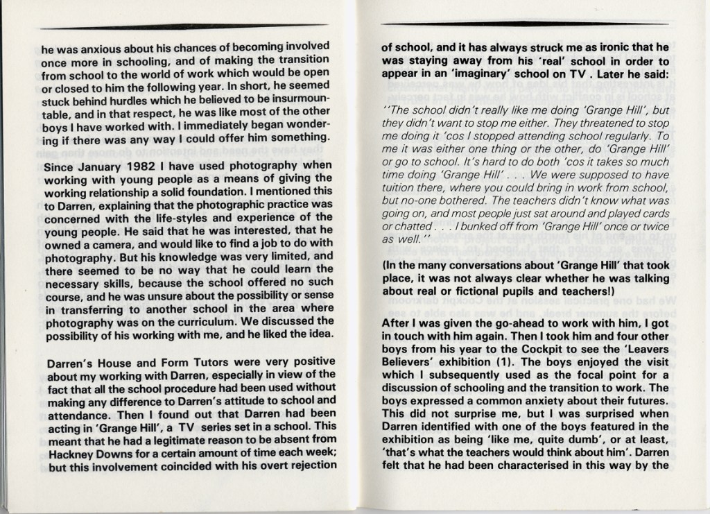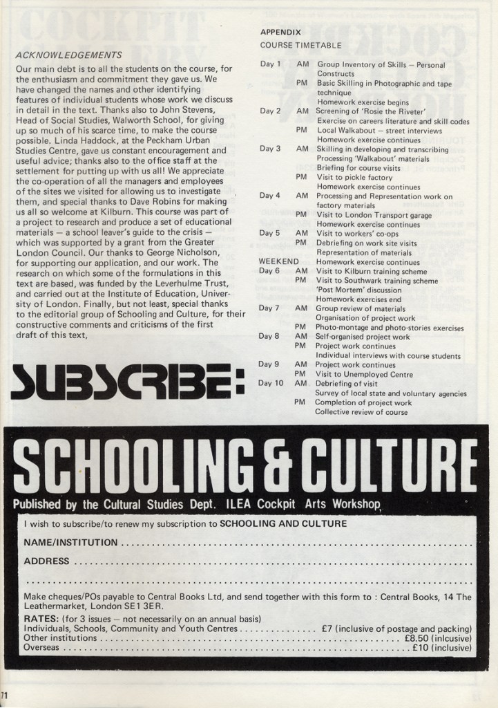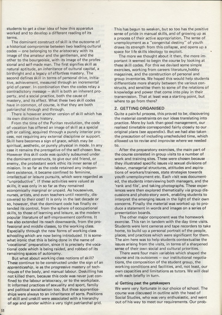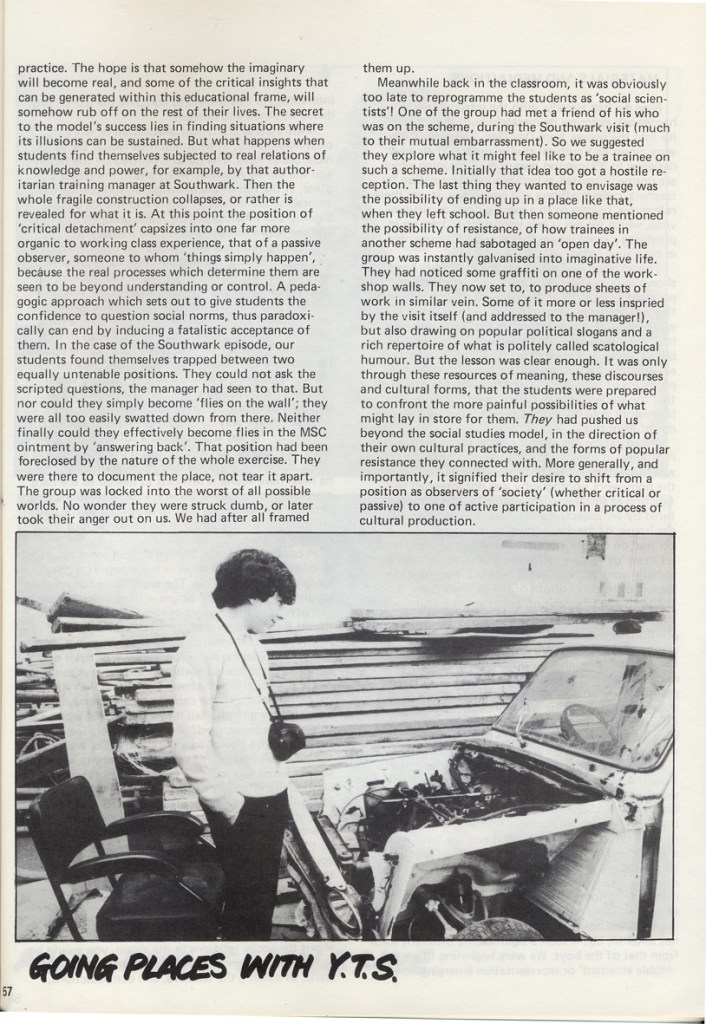 Philip Cohen and Adrian Chappell wrote about their exhibition Leavers Believers? in Schooling and Culture Issue 13 – Summer 1983