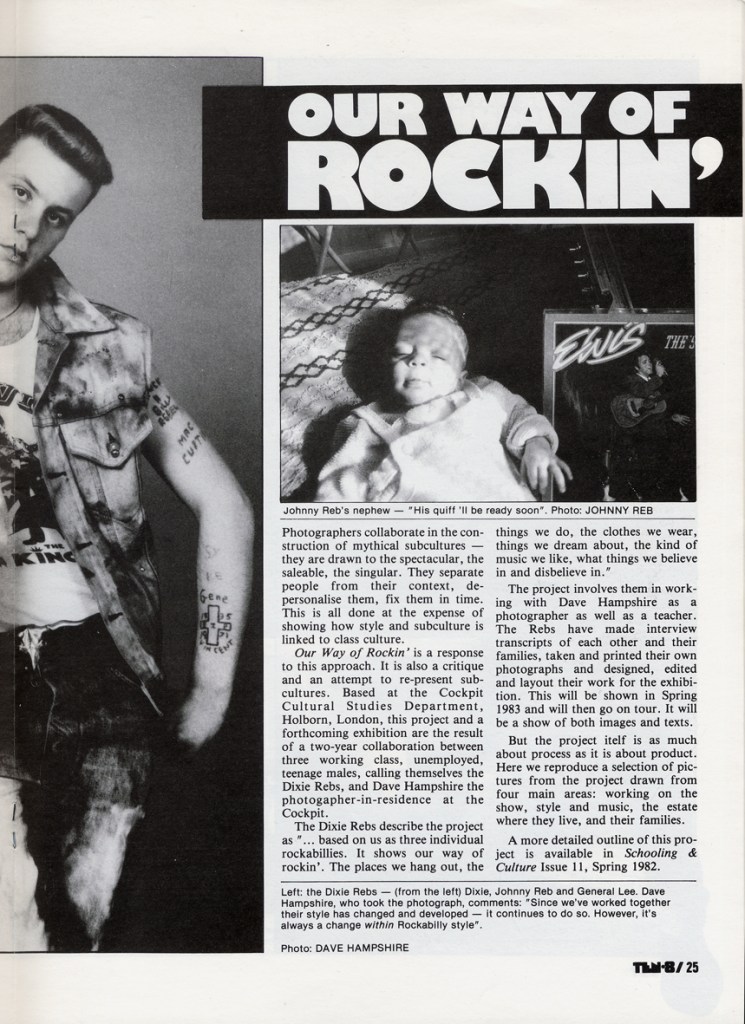 “Our Way of Rockin'” shows the people ‘behind’ the style — it shows the relationship between their style and the rest of their lives; how they live their style as part of a more general working-class culture.
