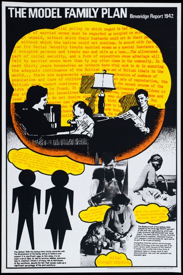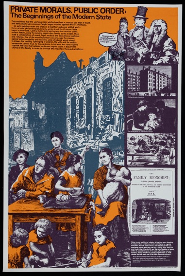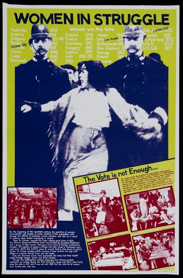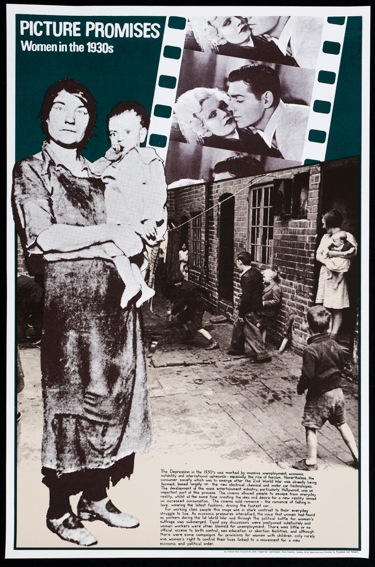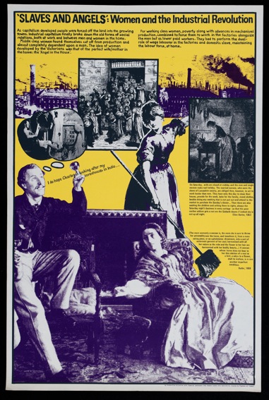 The Poster-Film collective produced hand made silk screen prints. The Cockpit toured Whose World is the World, a history of colonialism which was made with teachers and produced as a set of 12. Once money was raised by the Poster Film collective to produce them in litho in 1982 they were withdrawn from touring as schools began to buy sets. In 1985 the collective made a set about women which was called Between Future and Past shown here.