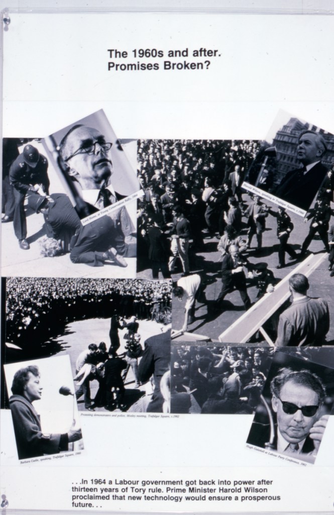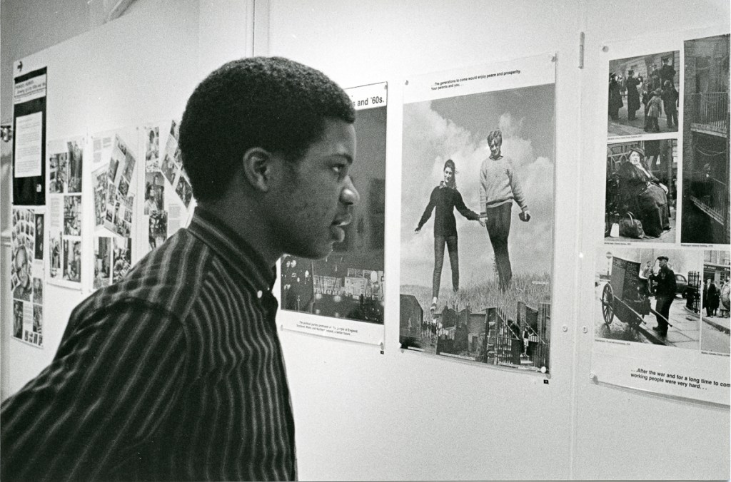 This exhibition was produced collaboratively by Henry and Rose Grant and the Cockpit Department of Cultural Studies. It looks at the development of post-war state education and its relationship to the changing cultural circumstances of young people. It shows housing conditions immediately after the war, the agitation for change within the labour and trade union movement, the setting up of the NHS under the welfare state, nursery and primary schools in the post-war building programme, the secondary modern schools and the first comprehensives; 50’s mods and rockers; immigration; the new consumerism; 60’s pop culture; the setting up of CND; anti-Vietnam campaigns, student protest and the expansion of higher education; finally high-rise flats and the return of unemployment in the 1970’s.