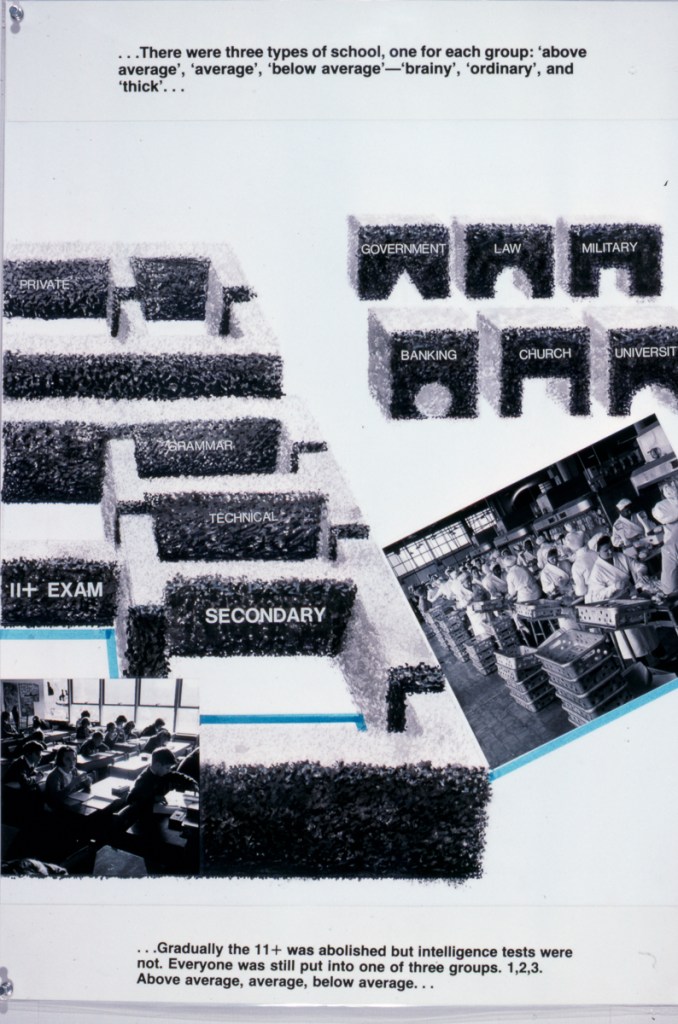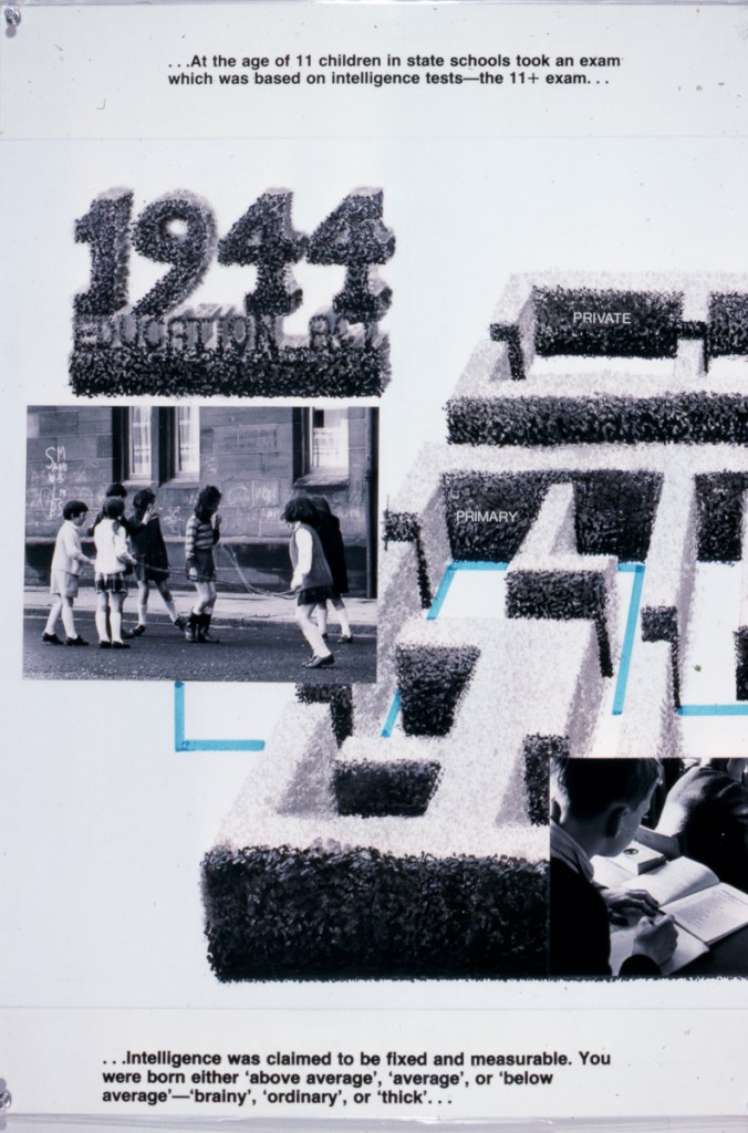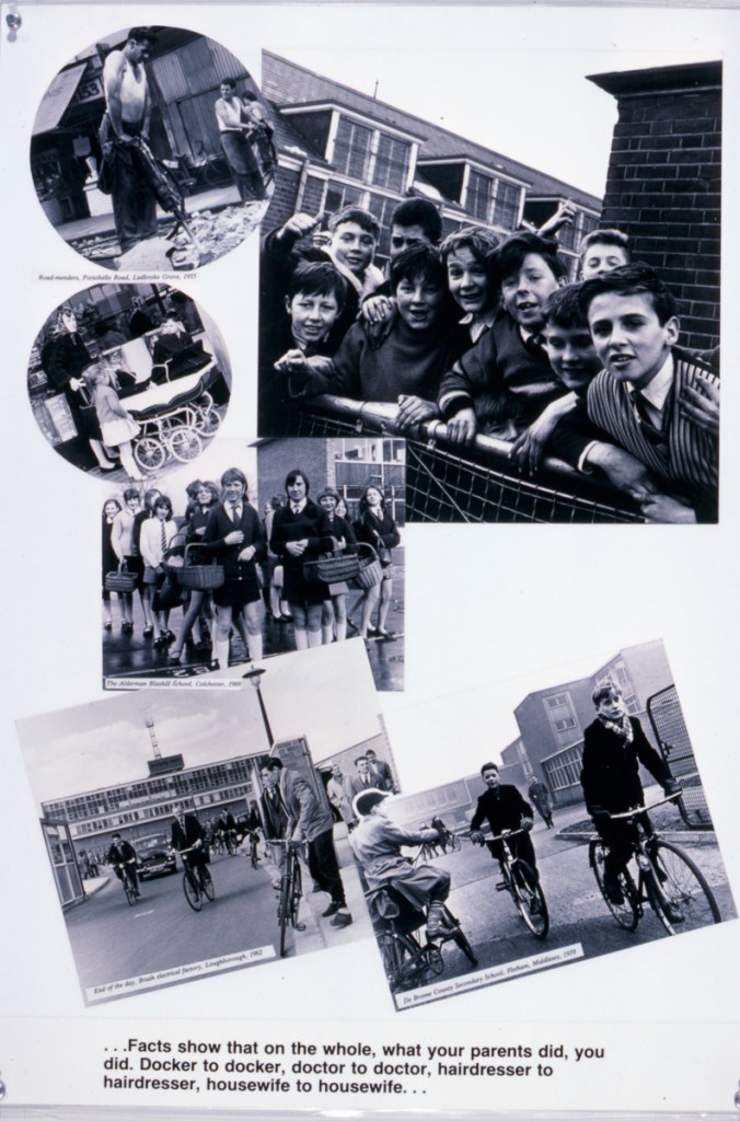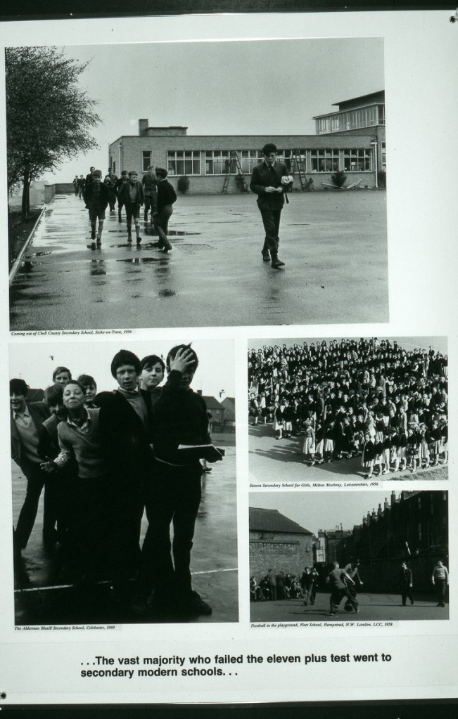 The exhibition consists of 60 laminated panels approx. 20 x 30 ins. It is a comprehensive and expansive view of postwar education and culture and raises many questions about the achievements and failures of post-war government policy. An important exhibition for all those interested in how education has and does relate to young people’s lives.
