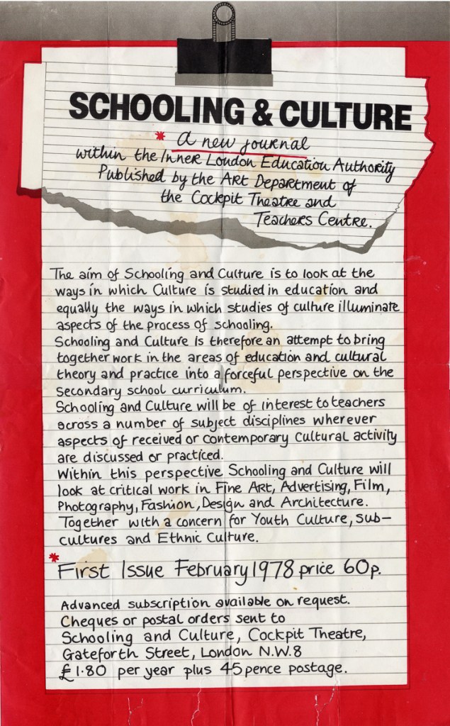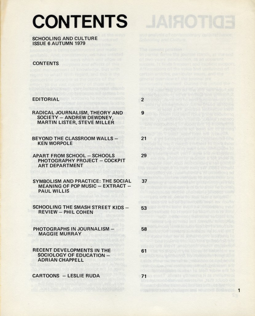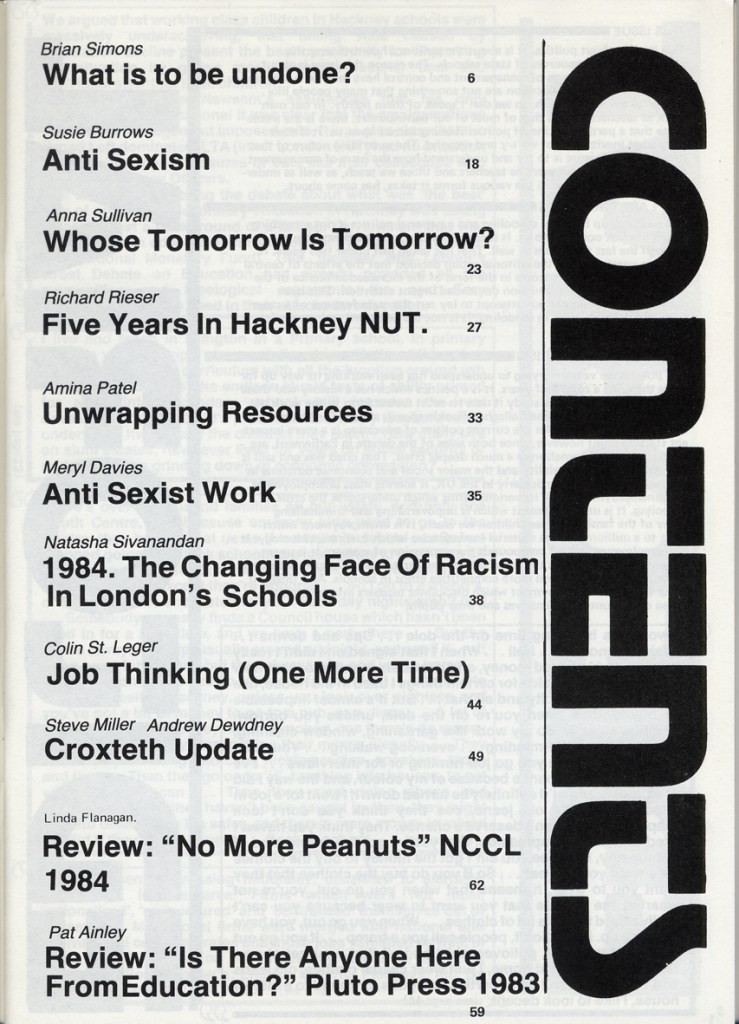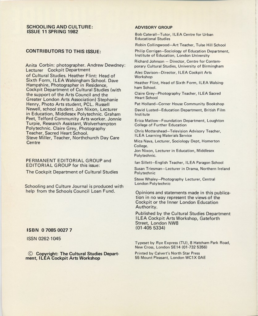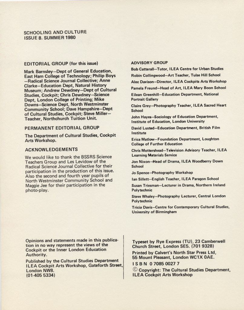 Adrian Chappell: ILEA Cockpit Cultural Studies Department Lynda Haddock: Peckham Urban Studies Centre