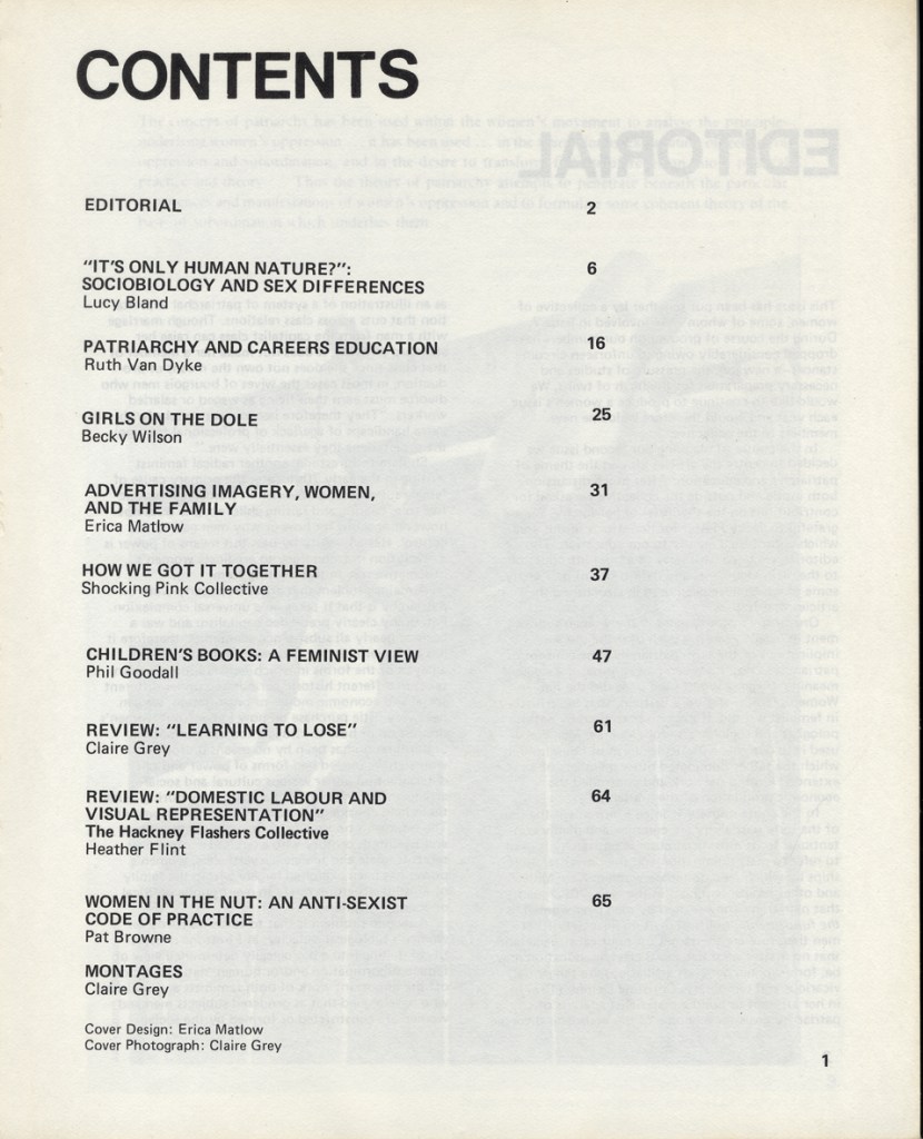 Three ILEA organisations have been involved in this production: the girls’ comprehensive school, the Cockpit Cultural Studies Department and the Peckham Urban Studies Centre. We are grateful for the support given by Ann Munroe, head of the school’s English Department and to Colin St Leger for permitting us to use additional photographs (pp 11,13,14,15). Last but by no means least, we would like to thank all the girls who took part.