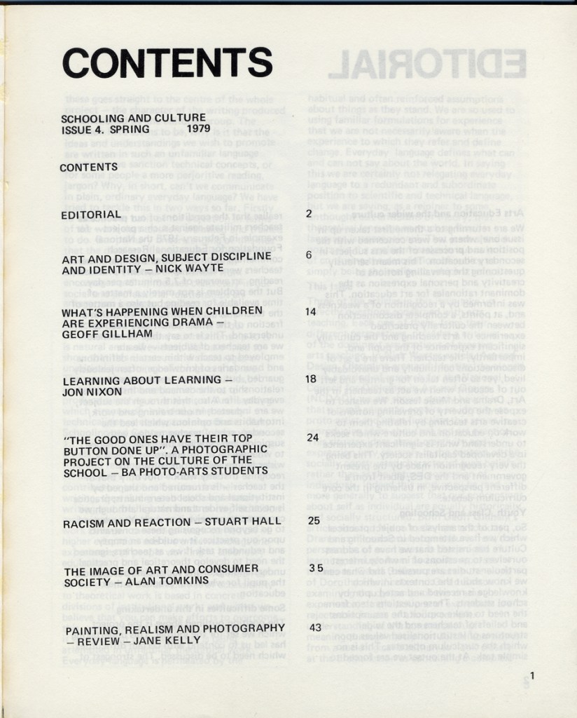 In addition to this publication, “Staying On” is available as a touring exhibition through the ILEA’S Cockpit Gallery. An account of the original teaching project which describes the rationale and method is published in “Cultural Studies in Secondary Schools” obtainable through the Cockpit Gallery.