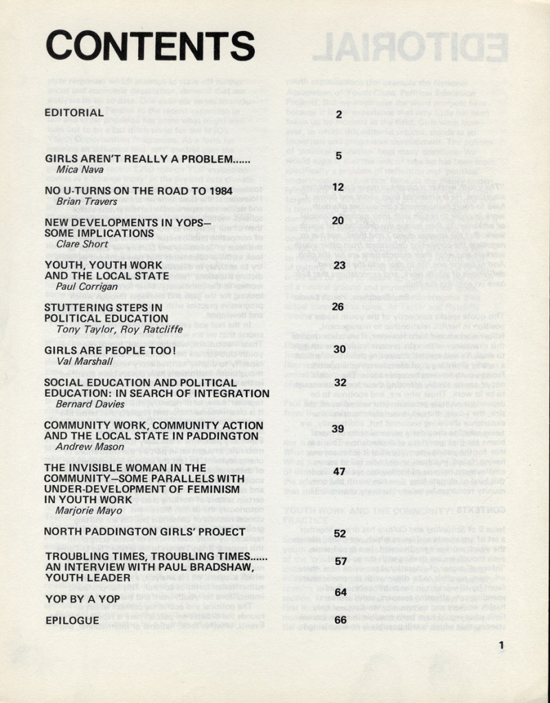“NO KIDDING PUBLISHING PROJECT”: “Staying On” is one of a series of exhibitions and publications which aim to represent young people’s perceptions of school to work transitions. Further information is available directly from the Project (c/o Post 16 Centre, Institute of Education, Bedford Way, WC1) or through the Cockpit Gallery (405 5334).