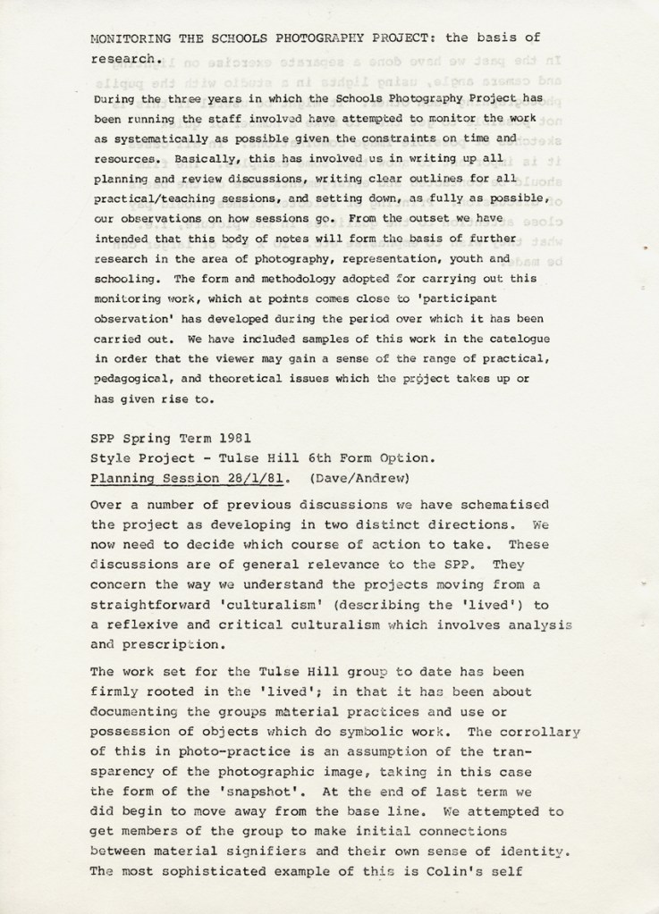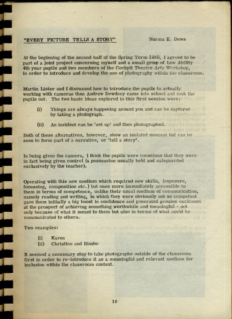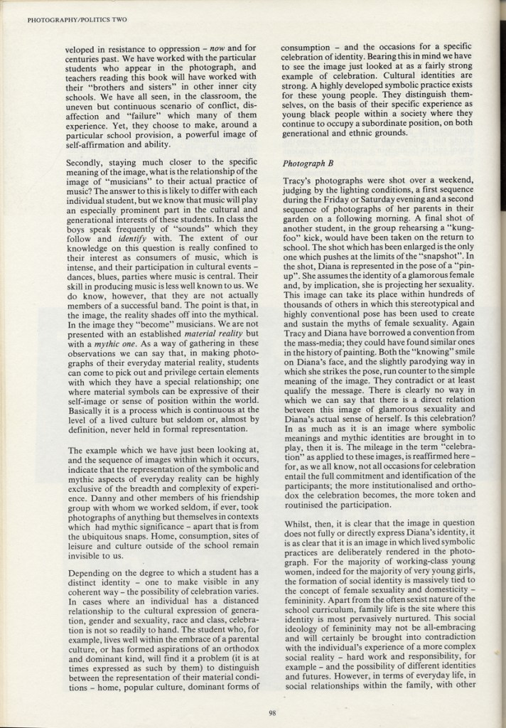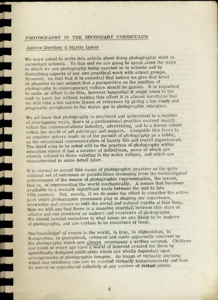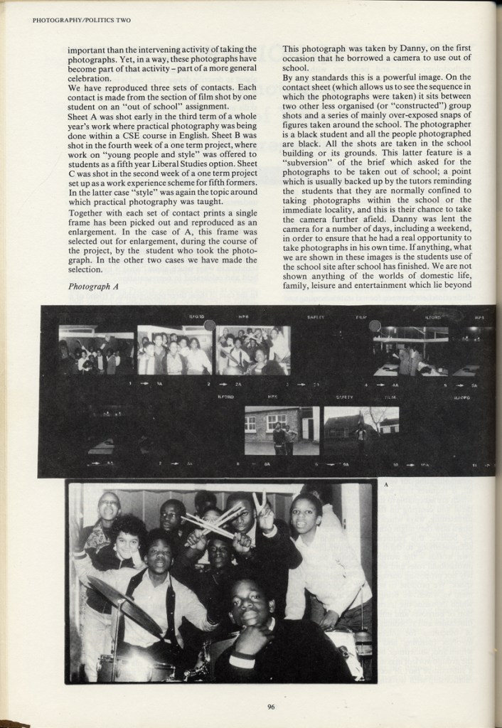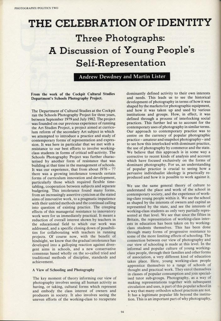 Andrew Dewdney and Martin Lister wrote about the Schools Photography Project in 1986 in Photography Politics Two.