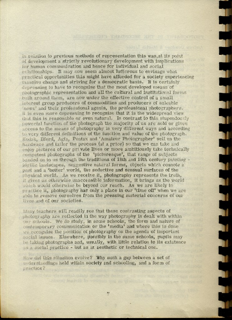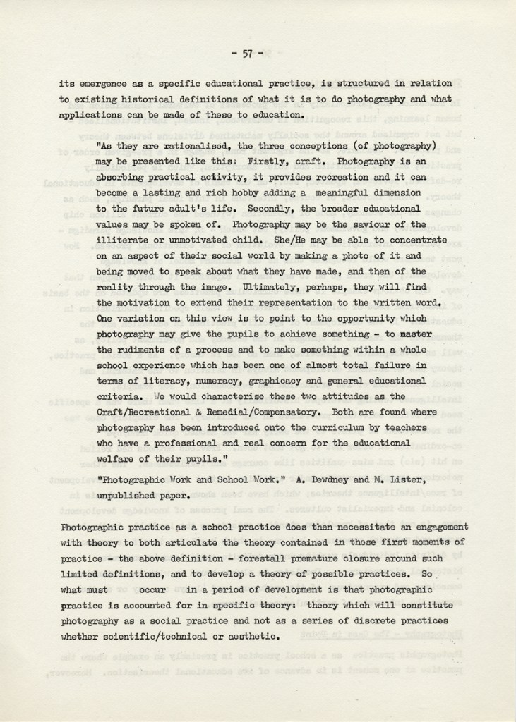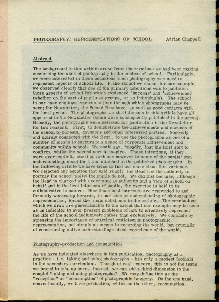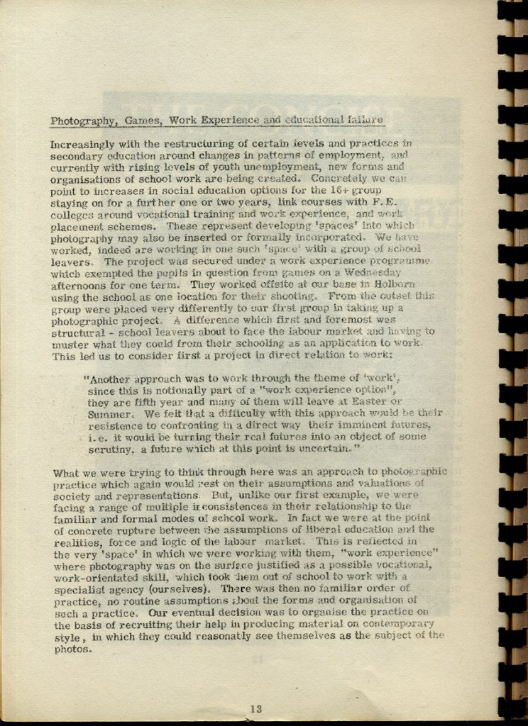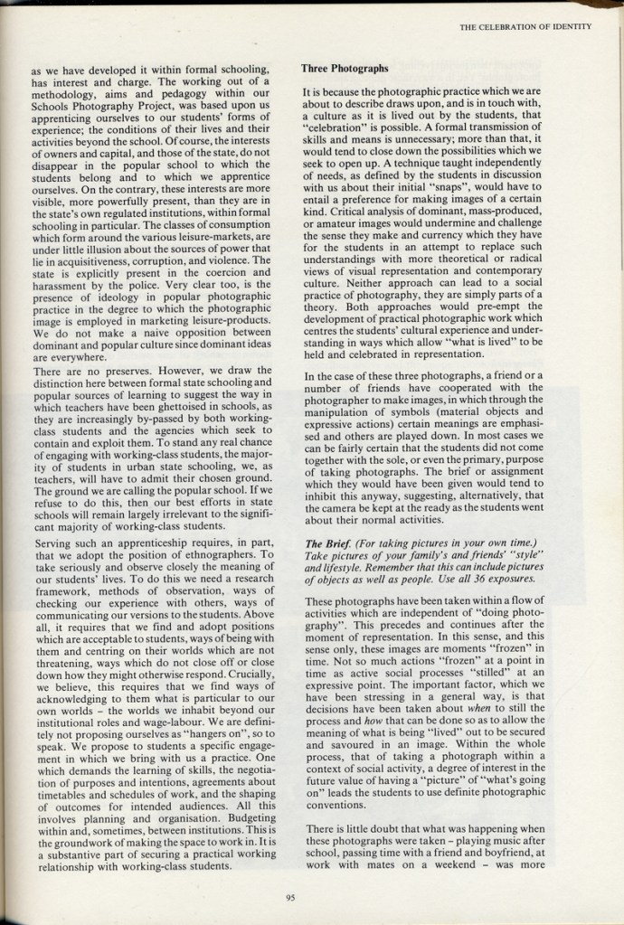 Andrew Dewdney and Martin Lister wrote about the Schools Photography Project in 1986 in Photography Politics Two.