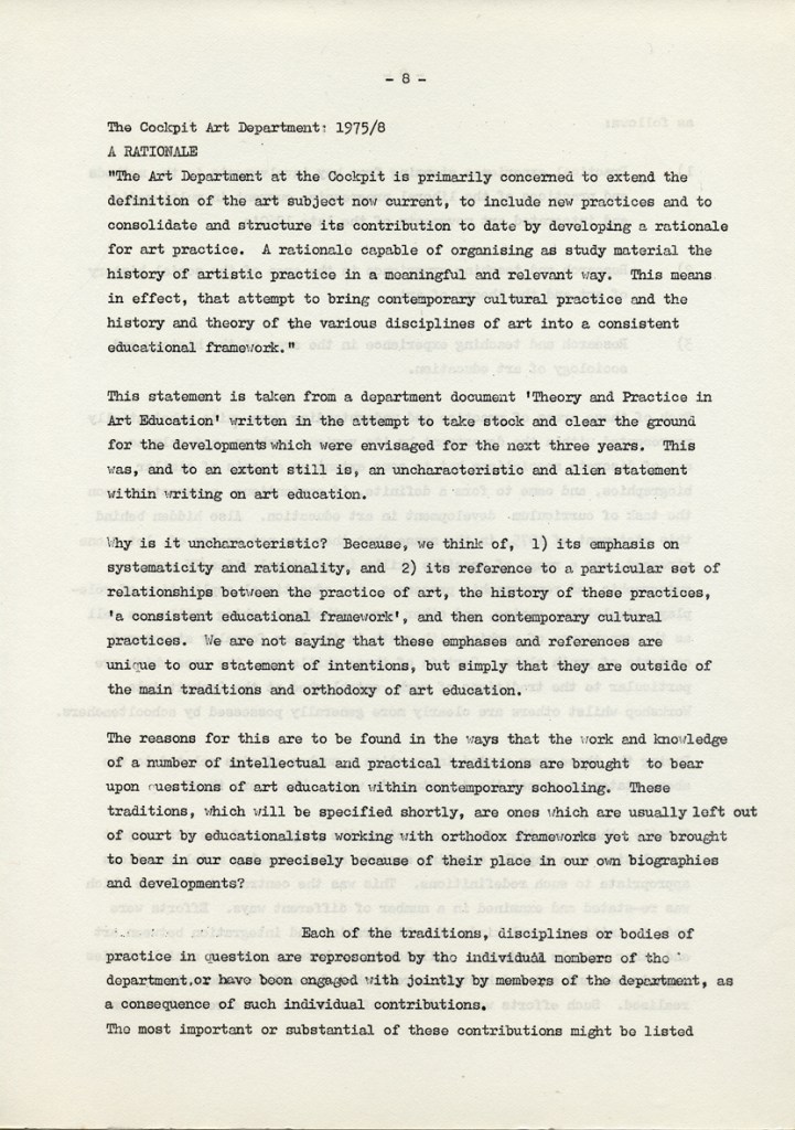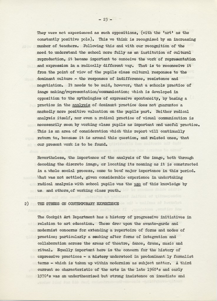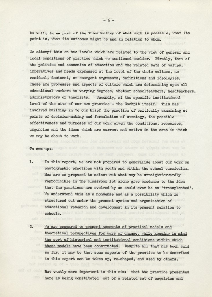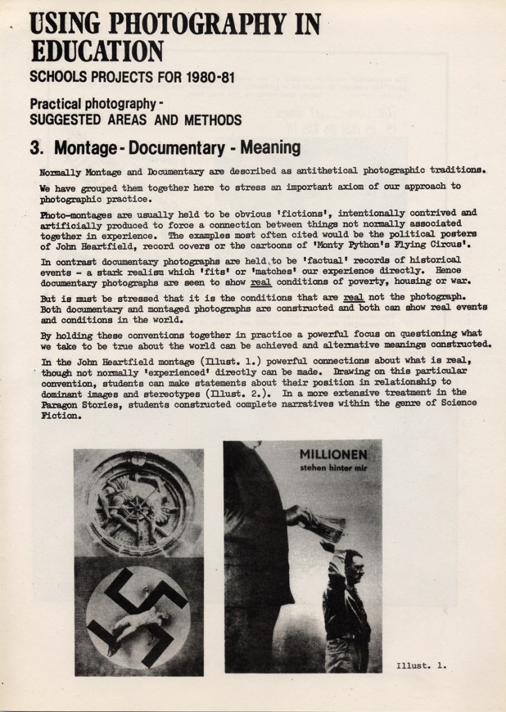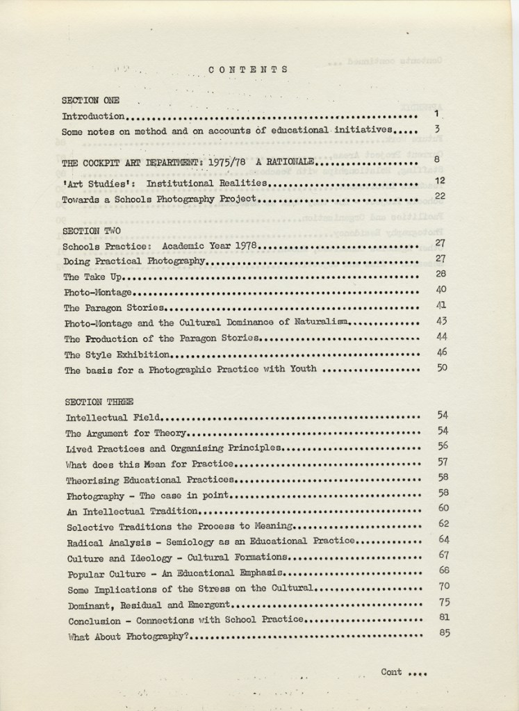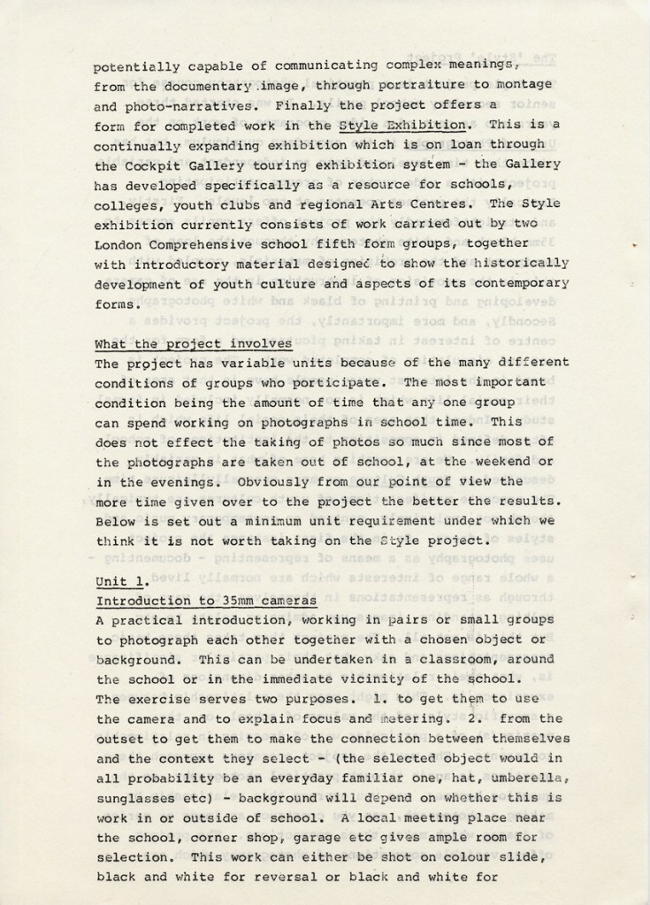 In May 1980 Photography in Education was produced by the ILEA Curriculum Working Party No.3. It included articles by the Cockpit Team which covered the background to their ideas, a reading list and a write-up of the photography projects at different institutions.