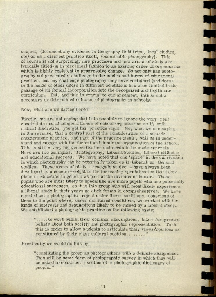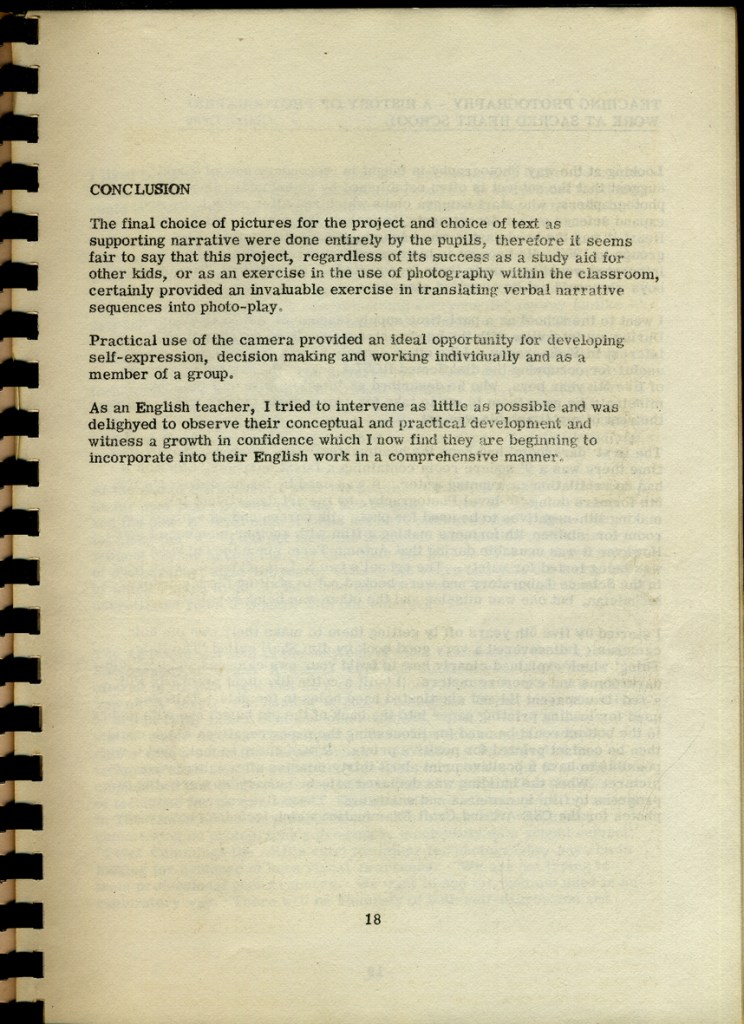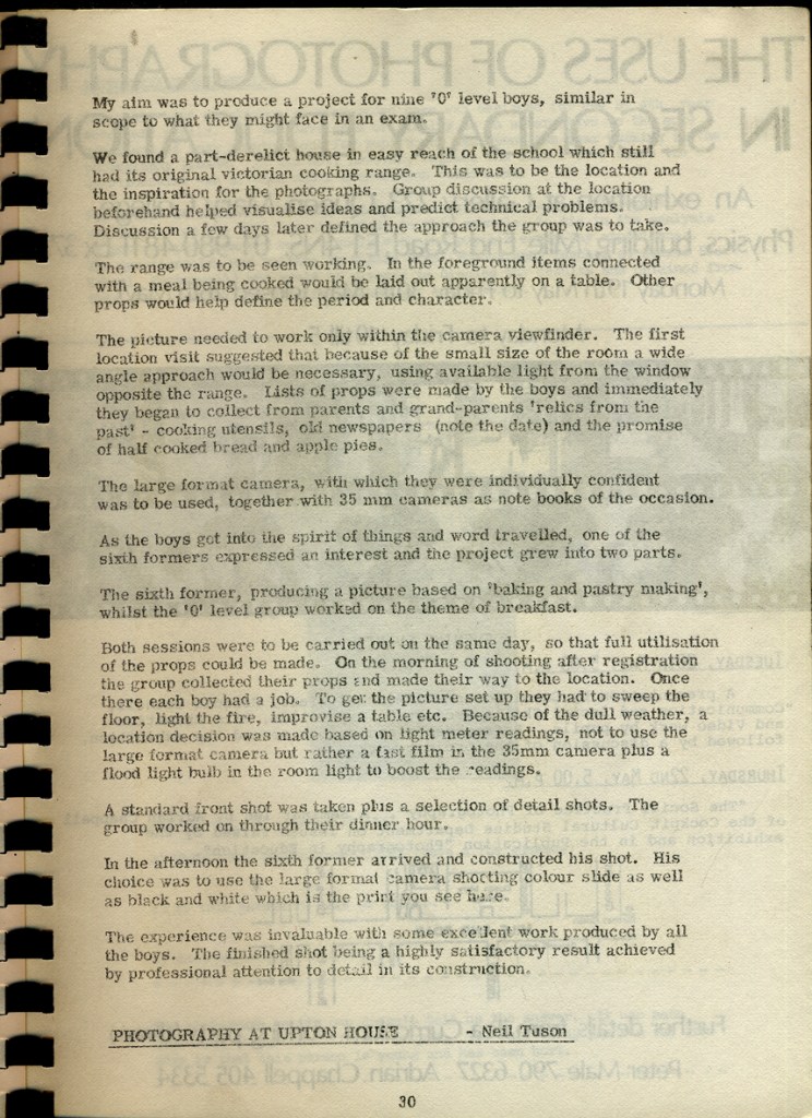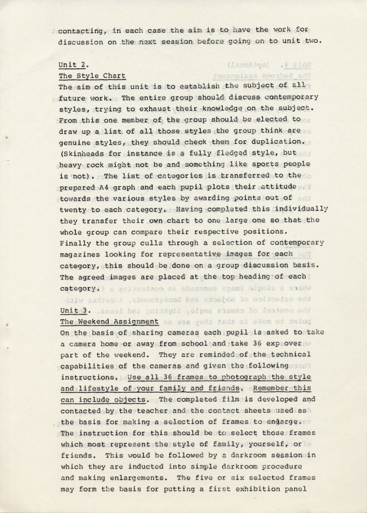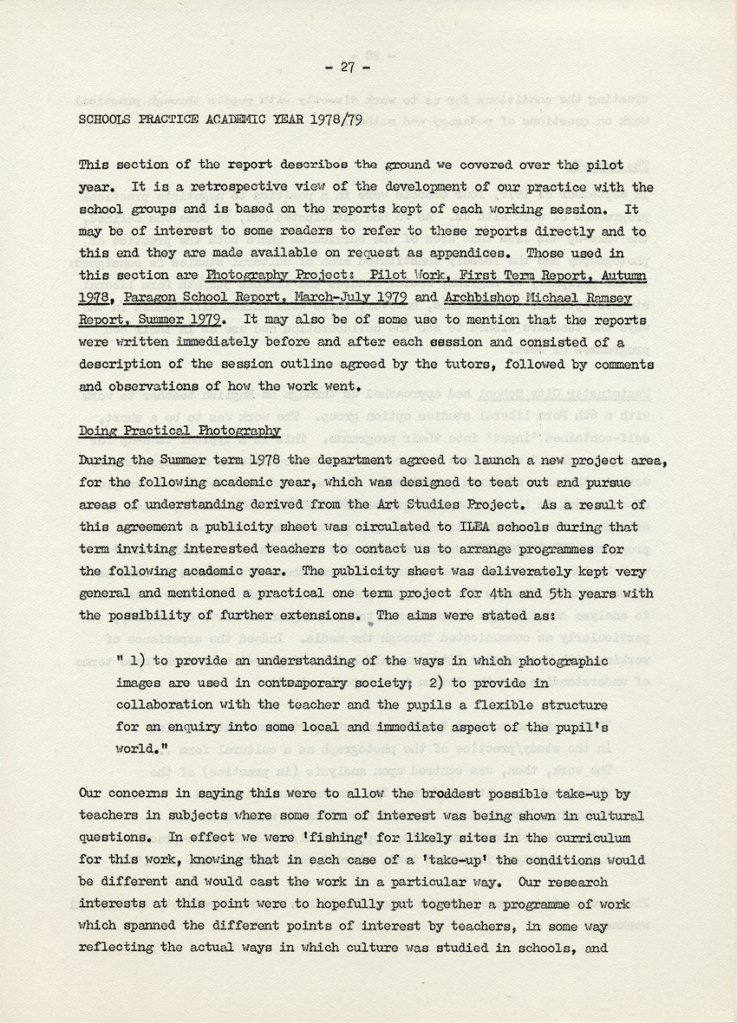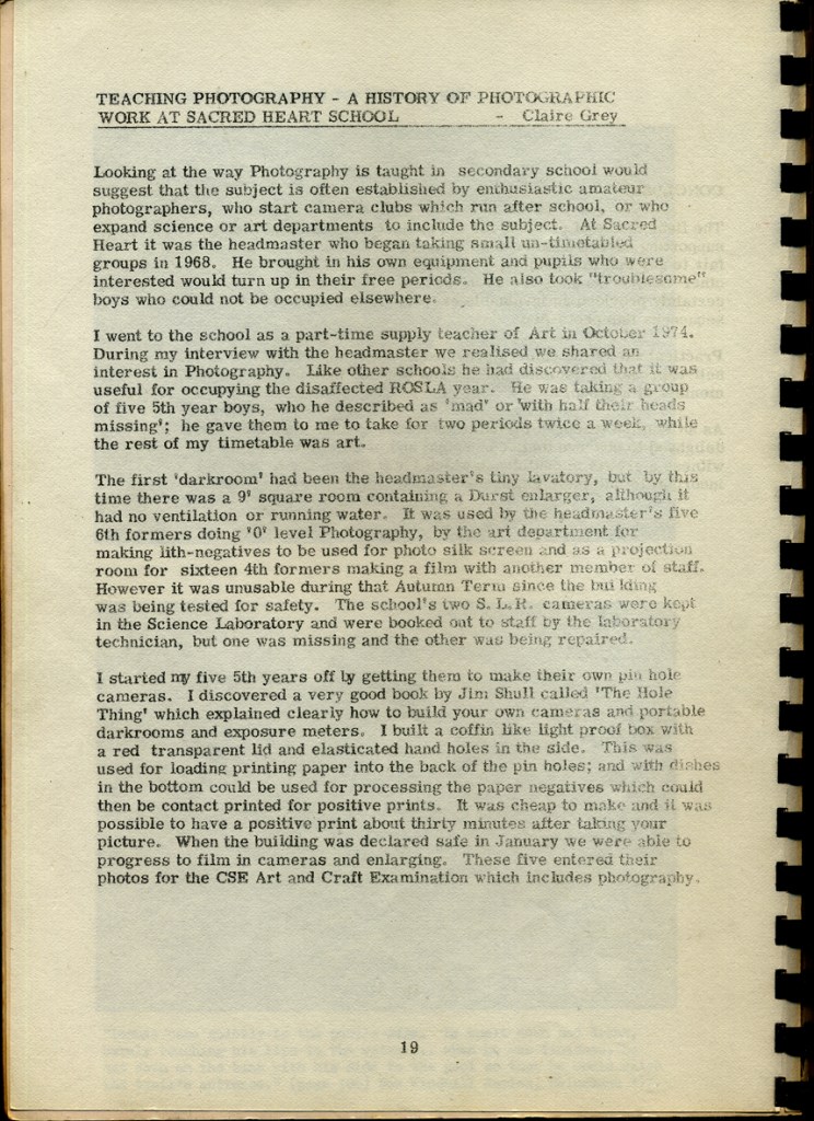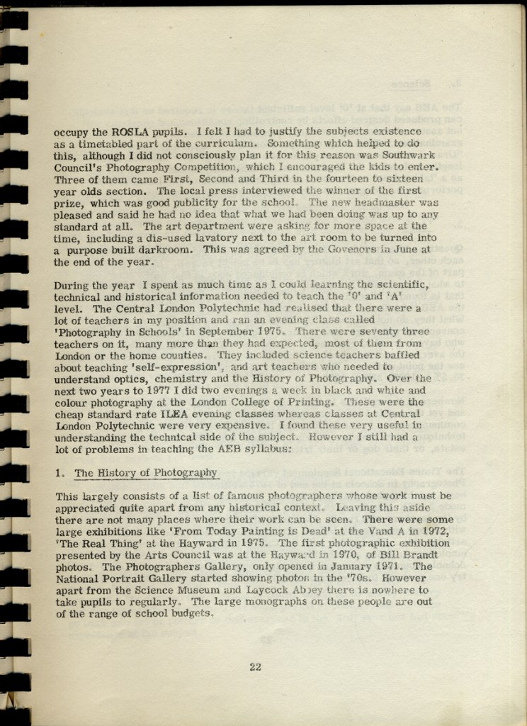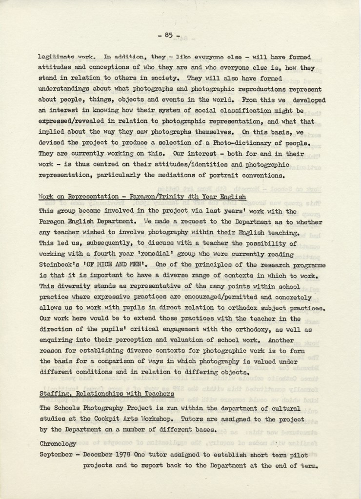 Out of the Art Studies work grew the Schools Photography Project. The pilot year ran from 1978-79.