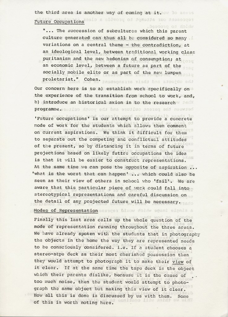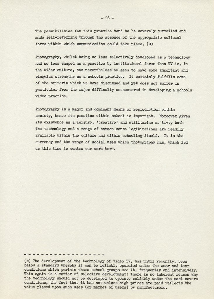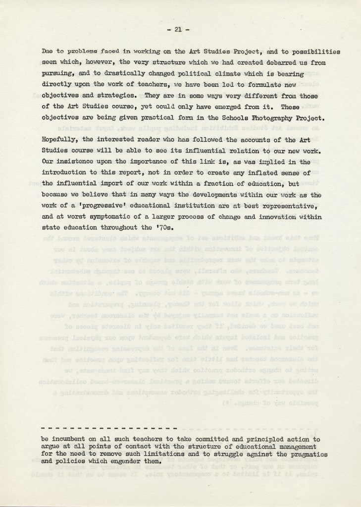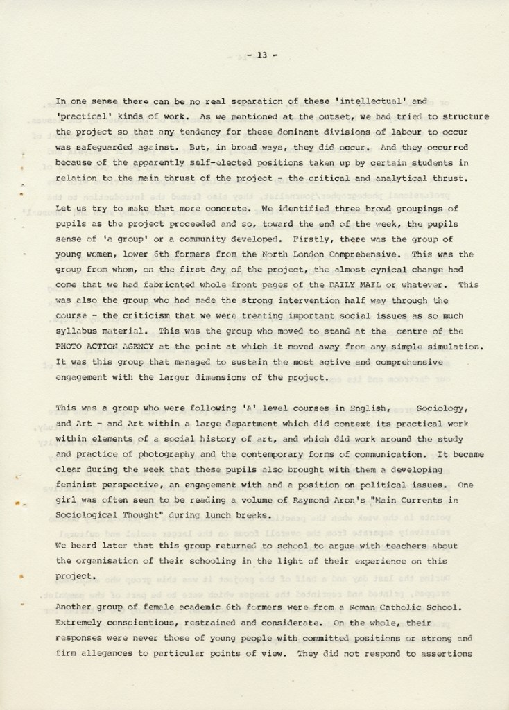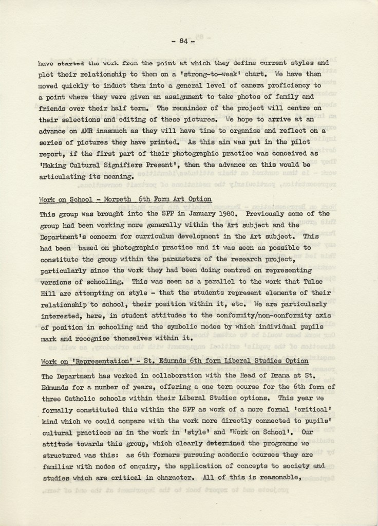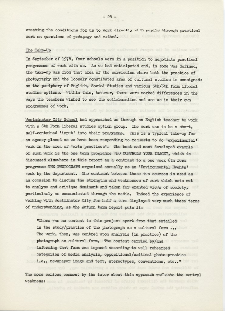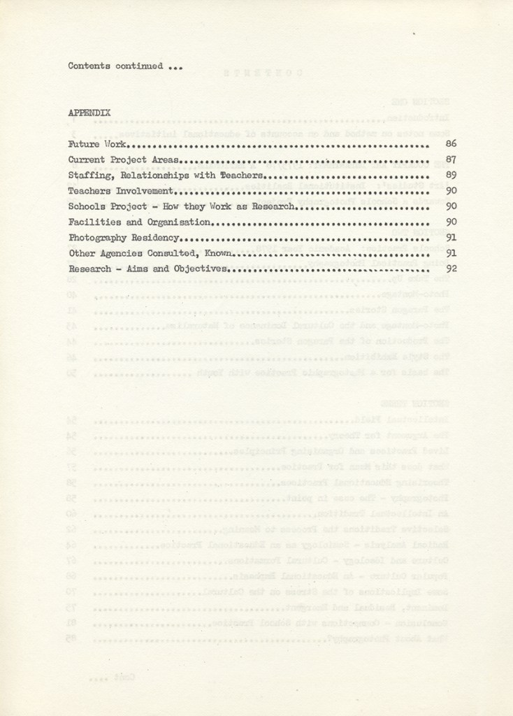 Out of the Art Studies work grew the Schools Photography Project. The pilot year ran from 1978-79.