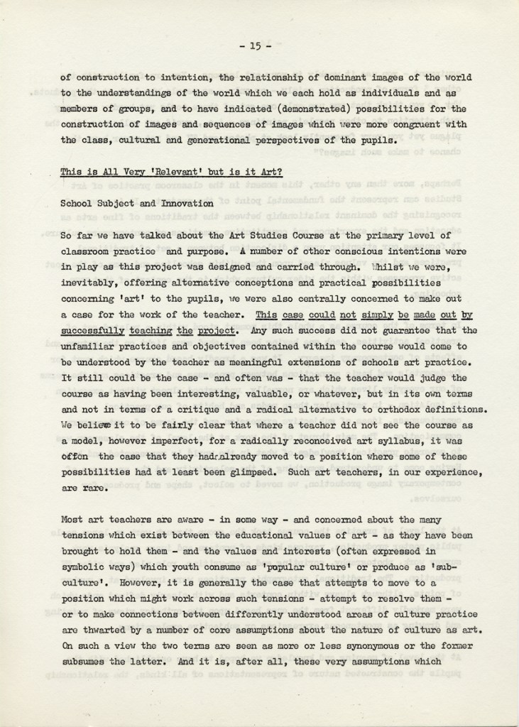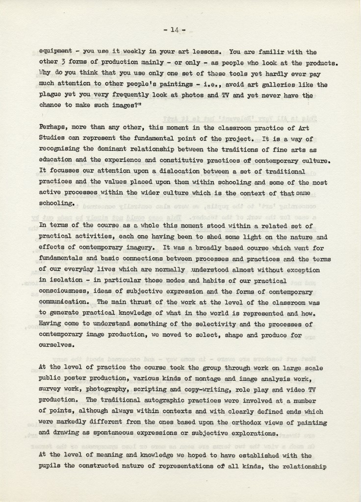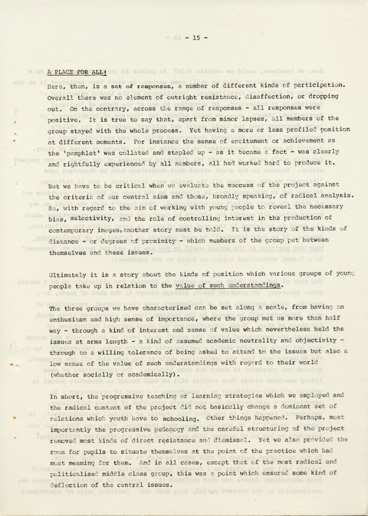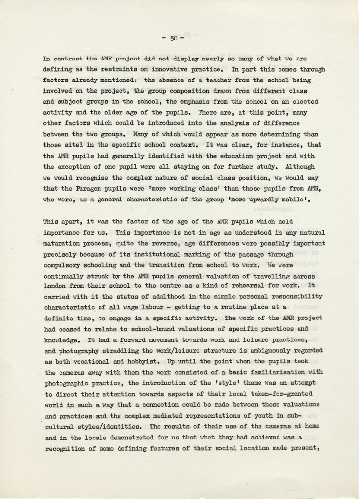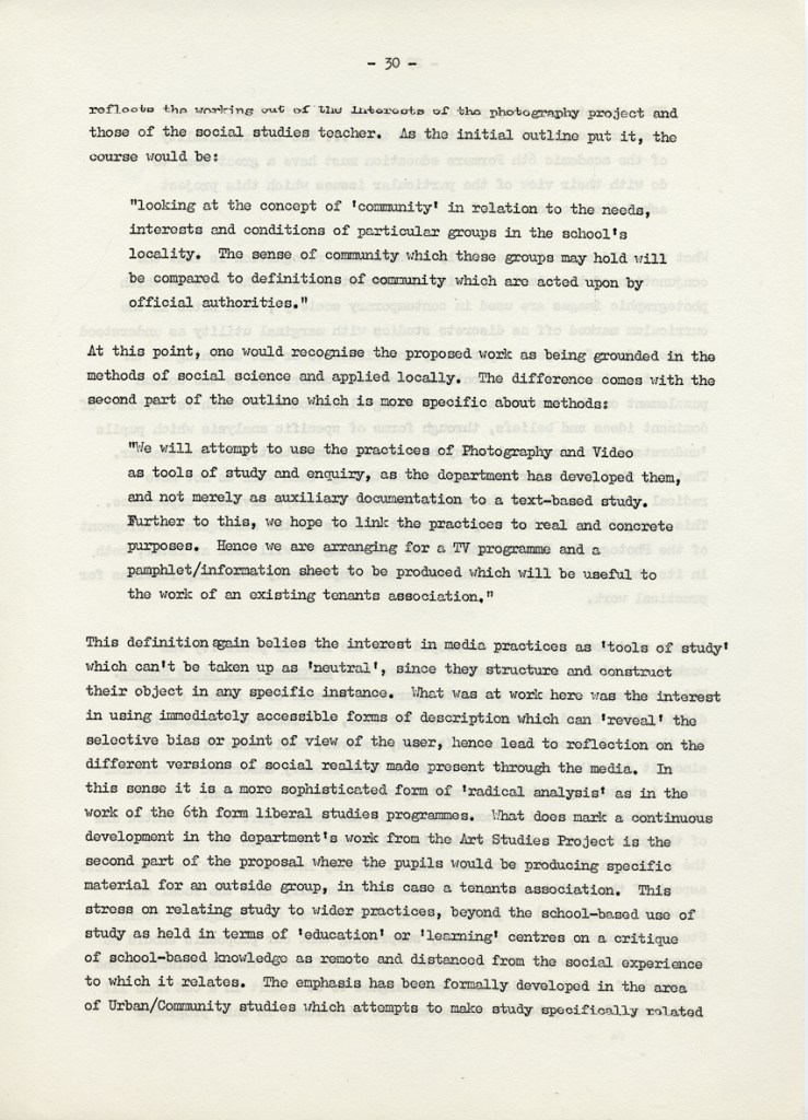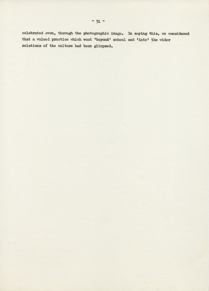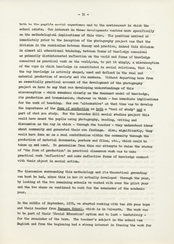 Out of the Art Studies work grew the Schools Photography Project. The pilot year ran from 1978-79.