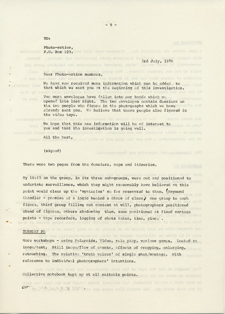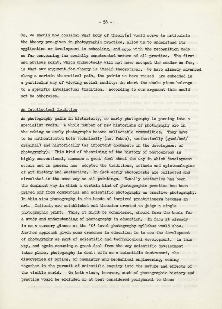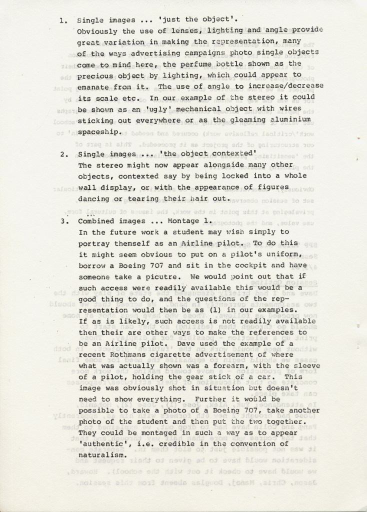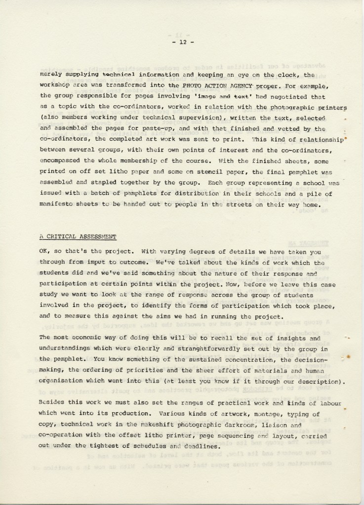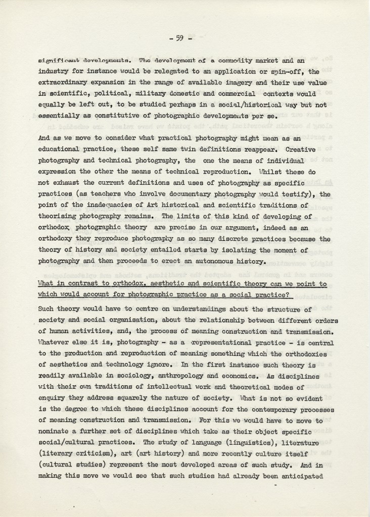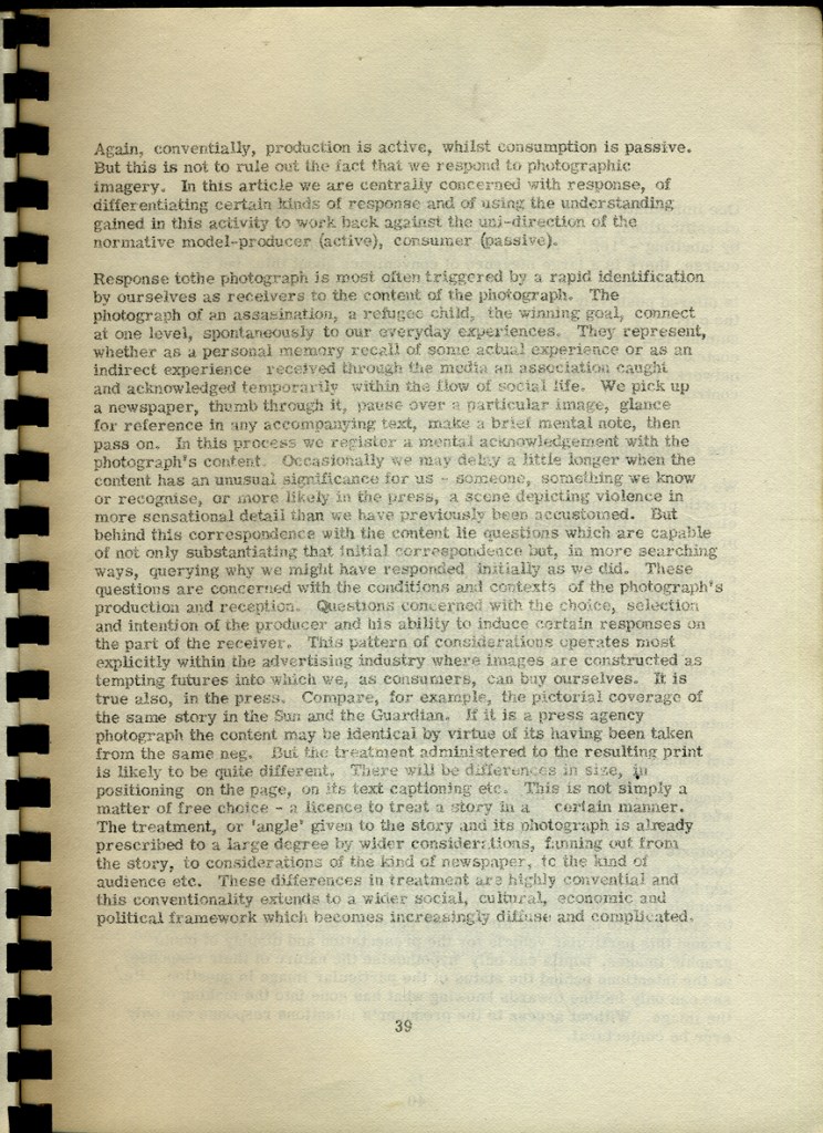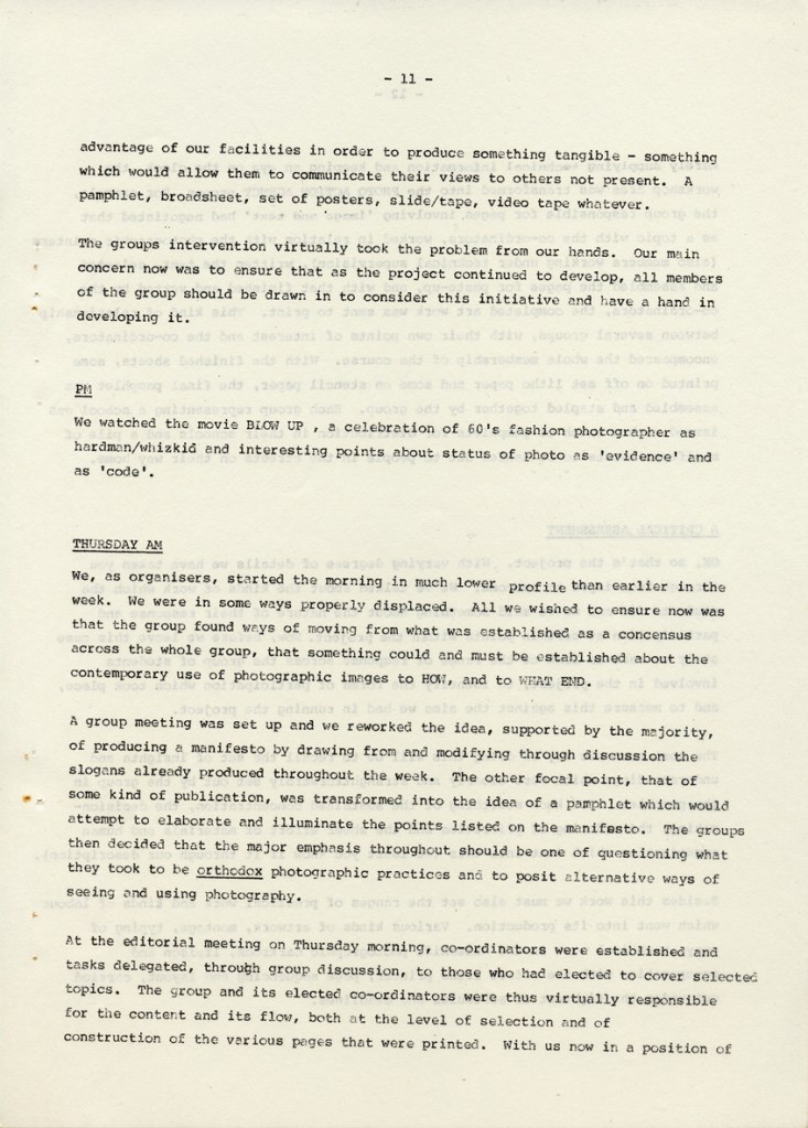 In the summer term of 1978 the department ran a one week project called The Photograph. An analysis of it was given as a lecture and written up in Photography Class and Schooling by Andrew Dewdney and Martin Lister in March 1980.