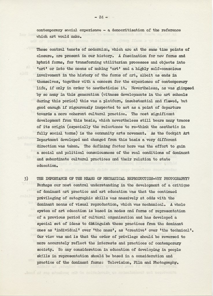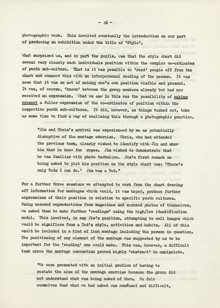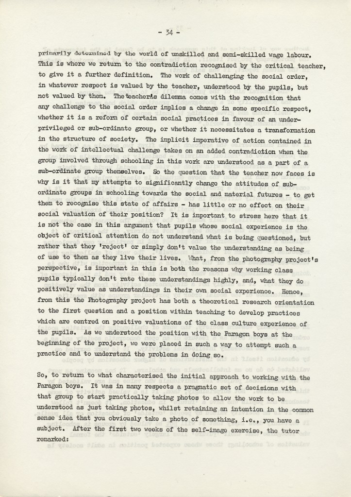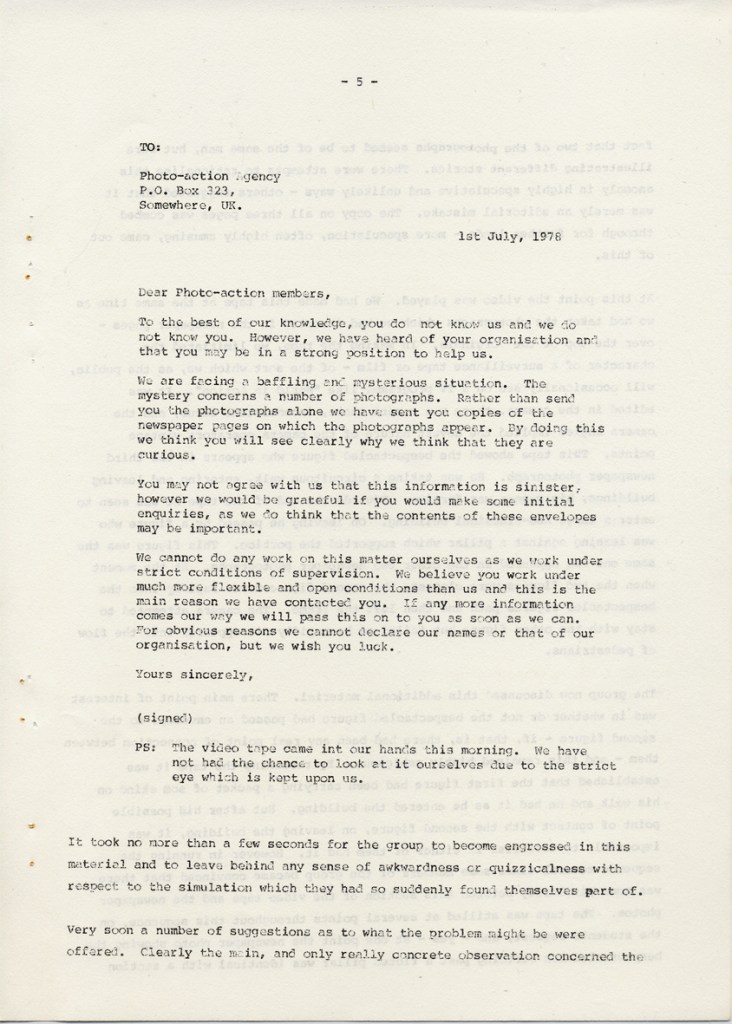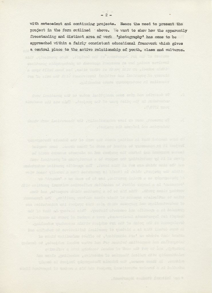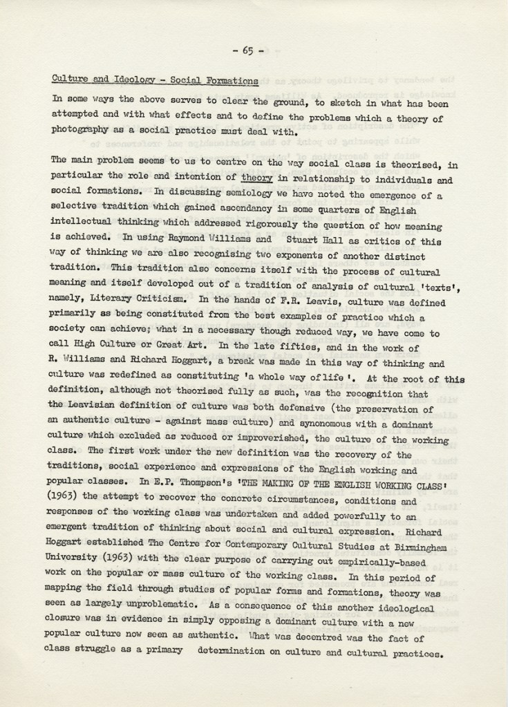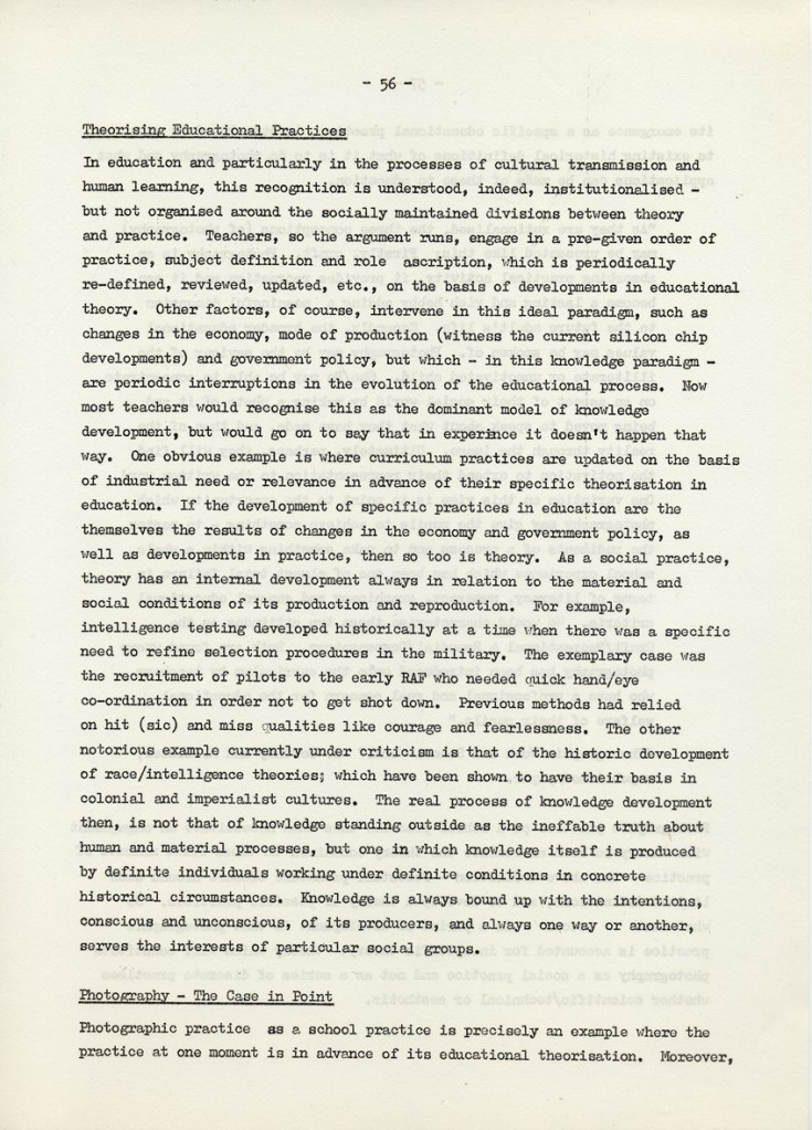In the summer term of 1978 the department ran a one week project called The Photograph. An analysis of it was given as a lecture and written up in Photography Class and Schooling by Andrew Dewdney and Martin Lister in March 1980.