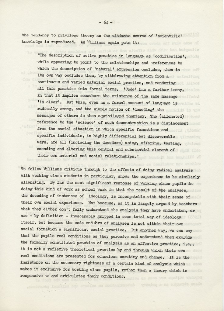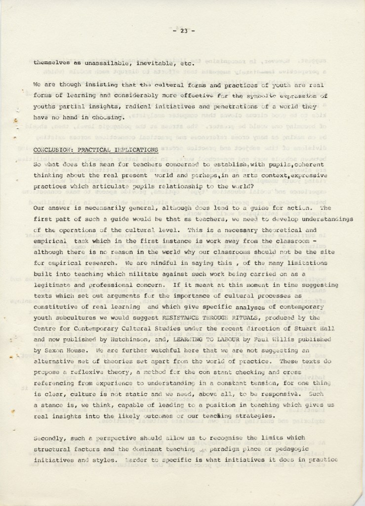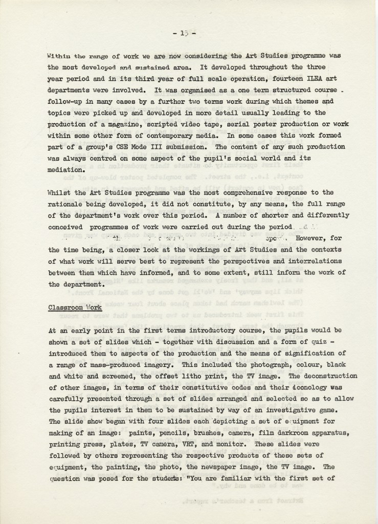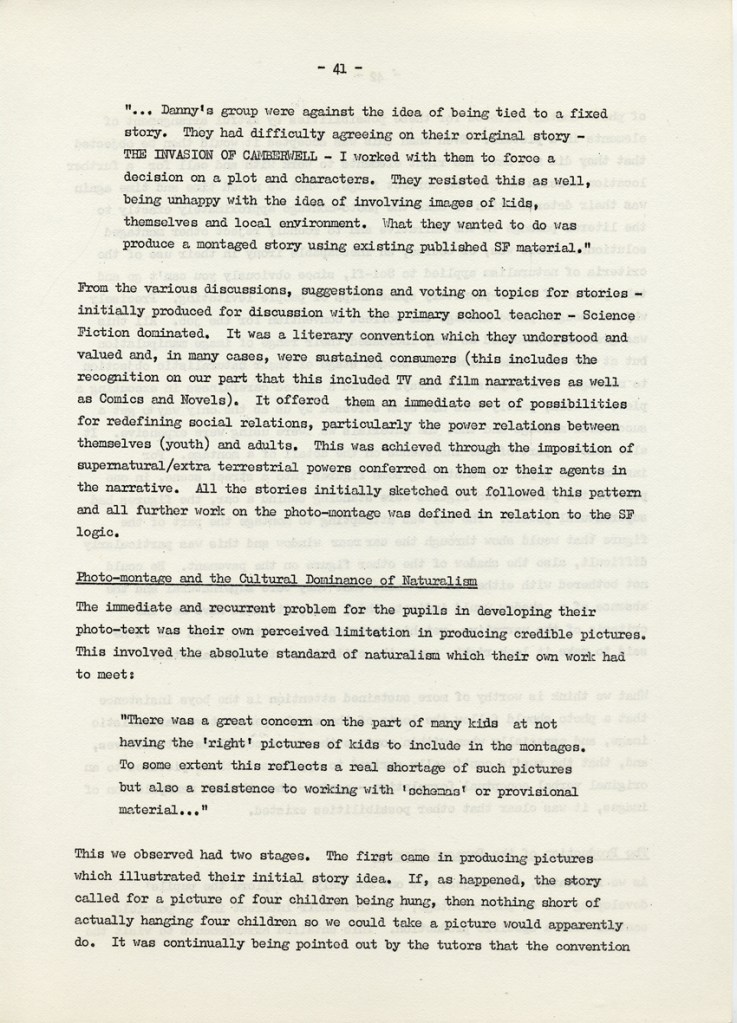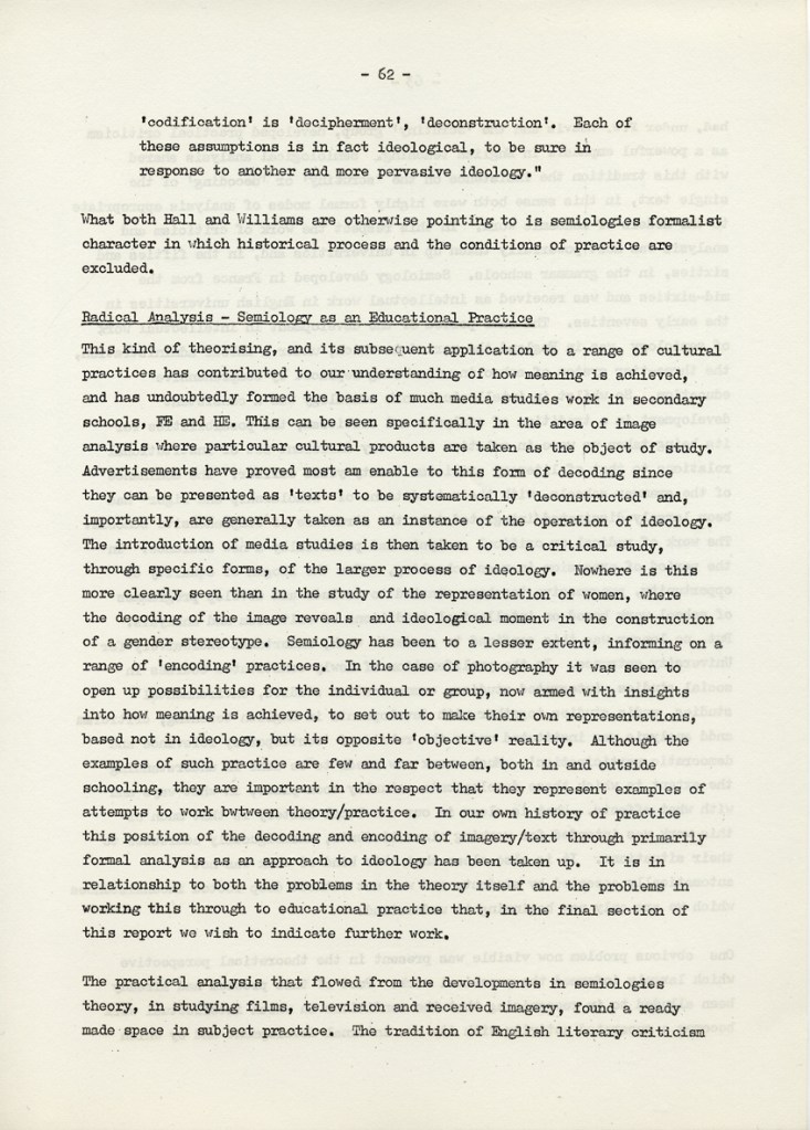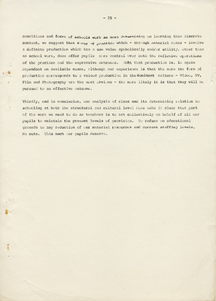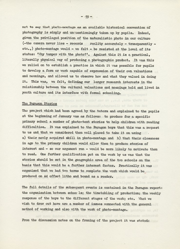 In the summer term of 1978 the department ran a one week project called The Photograph. An analysis of it was given as a lecture and written up in Photography Class and Schooling by Andrew Dewdney and Martin Lister in March 1980.