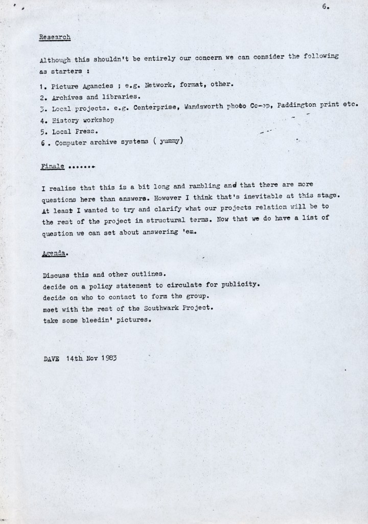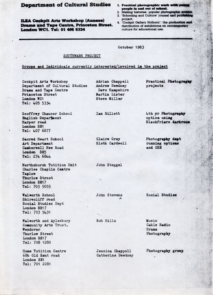 Southwark Project: October 1983