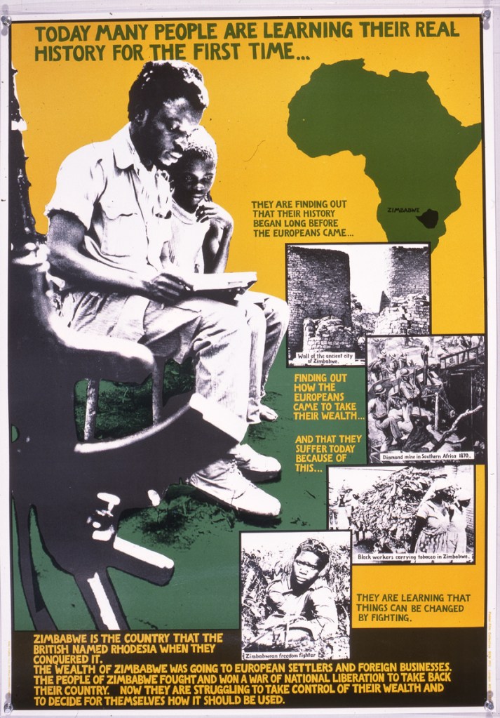 This set of twelve laminated posters made by the Poster-Film Collective, provides a historical perspective for teaching in a multicultural school. Each poster is 20″ x 30″ in bright three-colour silkscreen prints. They form a coherent set but are designed so that they can be presented one by one or in groups. They have been produced primarily for use across a wide age range in schools and within further education.